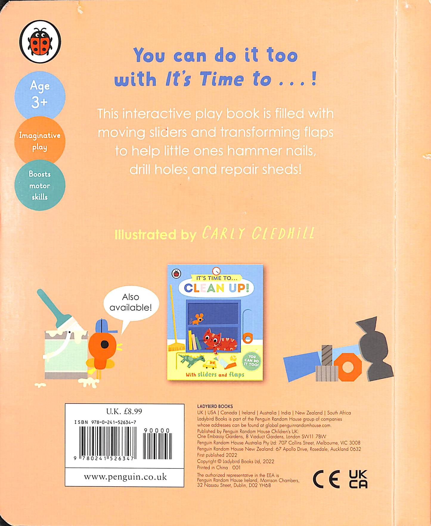 You can do it too with Ladybird's It's Time to...!This interactive novelty board book is filled with sliders and flaps to help little ones mimic the adult behaviours they see every day. In It's Time to... Fix It! the moving sliders and transformative flaps on every page allow toddlers to perform the tasks in the simple text - they can hammer nails, drill holes and even repair garden sheds!The It's Time to... series:Boosts motor skillsEncourages imaginative playRecommended for children aged 3+Also available:It's Time to...