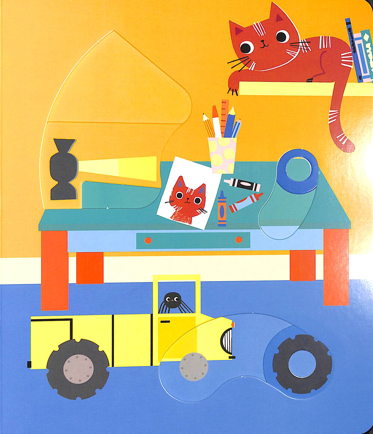 "With sliders and flaps.". Board book.
