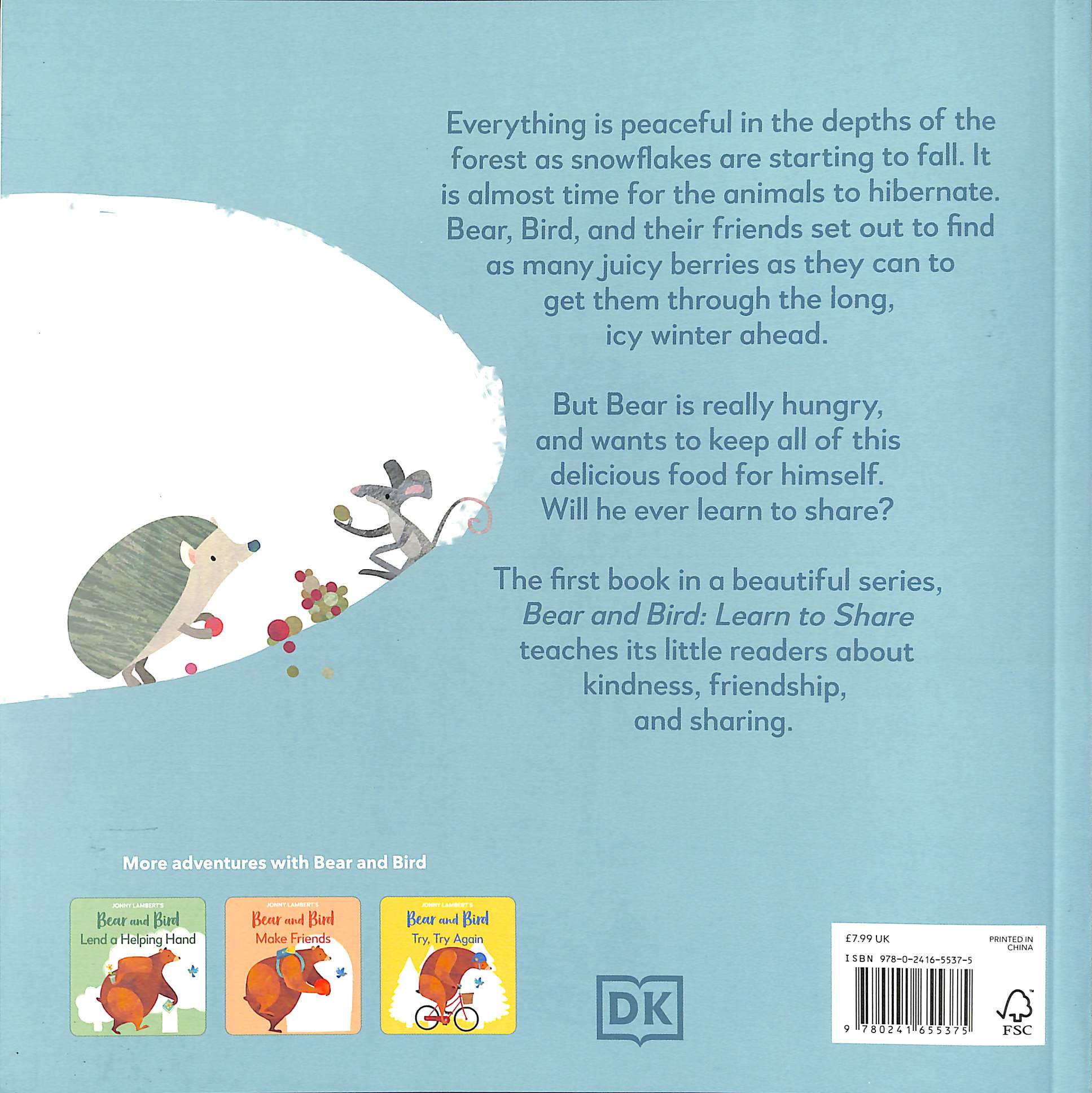 Is there enough food for everyone? With beautiful illustrations by renowned artist Jonny Lambert and an enchanting story, children will learn about the importance of sharing with others. At DK, we believe in the power of discovery. So why stop here? Jonny Lambert also brings you Bear and Bird: Explore the Seashore, Bear and Bird: Try, Try, and Bear and Bird: Make Friends, a collection of beautifully illustrated storybooks that set to teach young readers that sharing is caring!