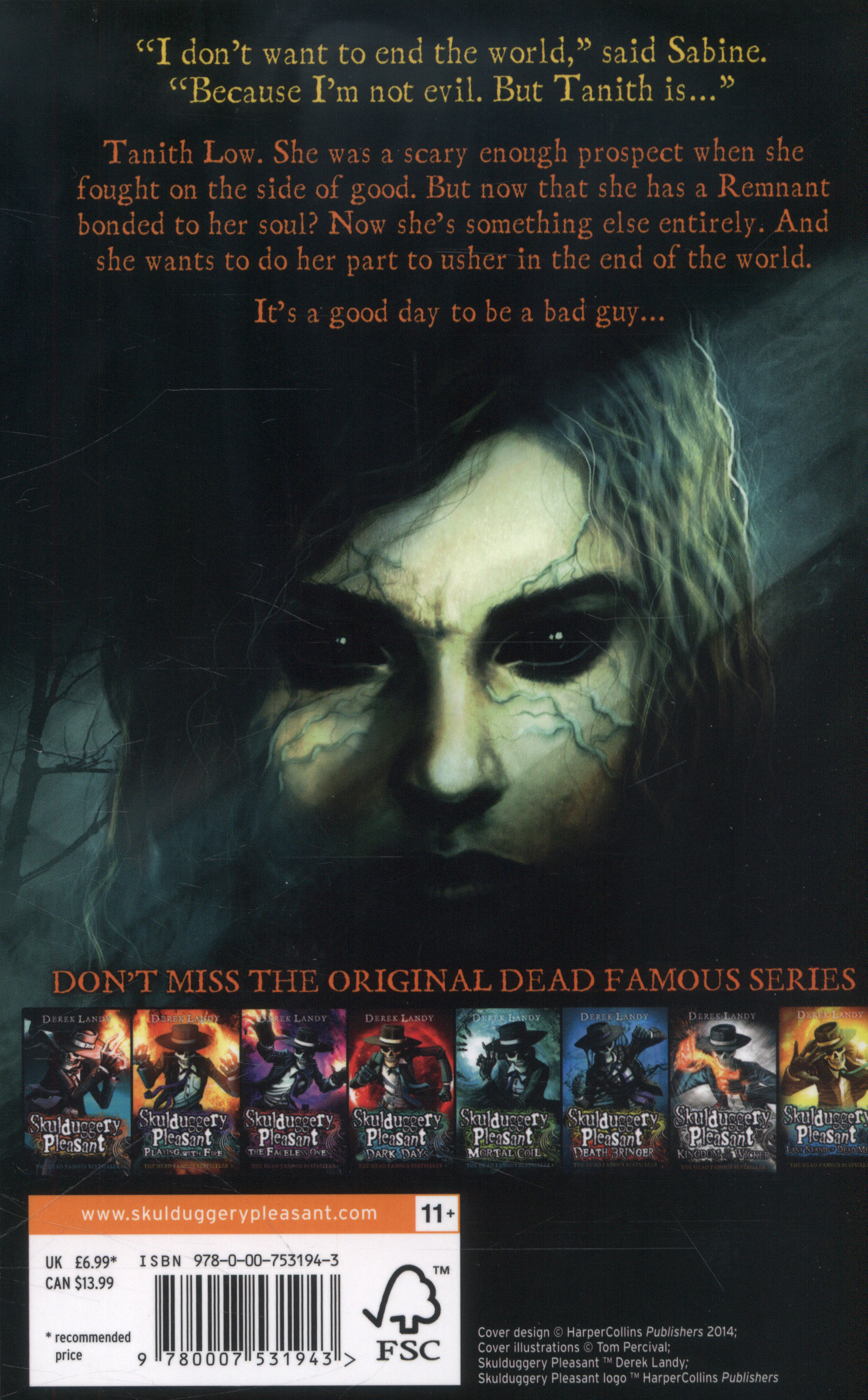 A brilliant, hilarious one-off novel in the Skulduggery Pleasant universe, from number-one-bestselling author Derek Landy – now in paperback. This time, the bad guys take the stage. Tanith Low, now possessed by a remnant, recruits a gang of villains – many of whom will be familiar from previous Skulduggery adventures – in order to track down and steal the four God-Killer level weapons that could hurt Darquesse when she eventually emerges.