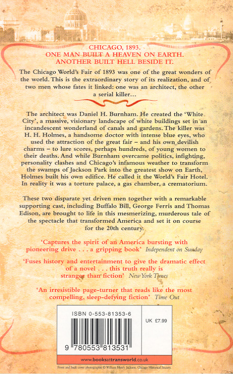 This is the incredible story of its realization, and of the two men whose fates it linked: one was an architect, the other a serial killer.