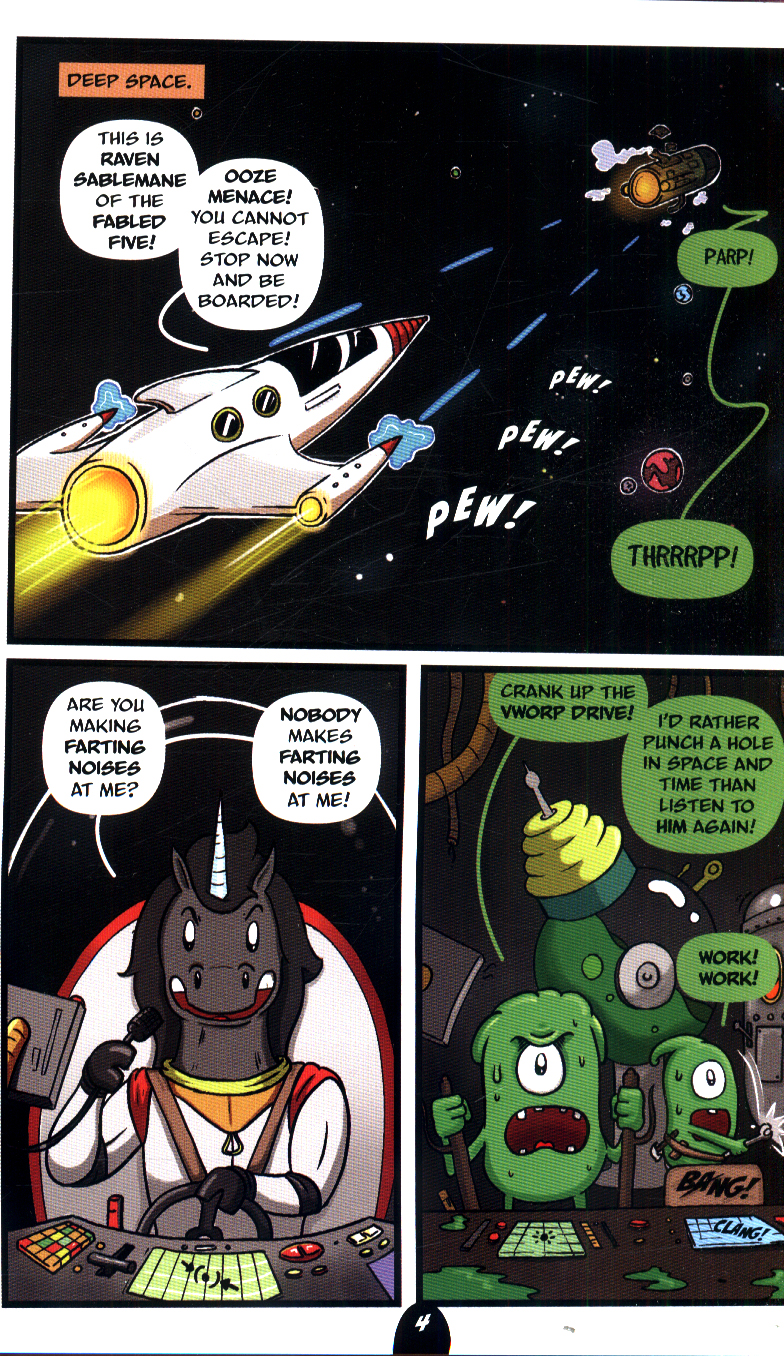 Raven Sablemane is battling The Ooze when his spaceship is sucked into a wormhole.