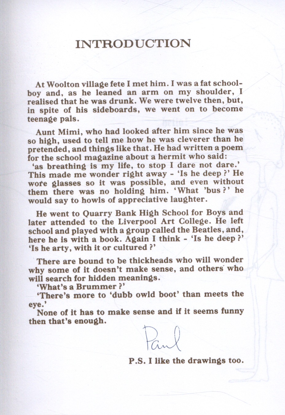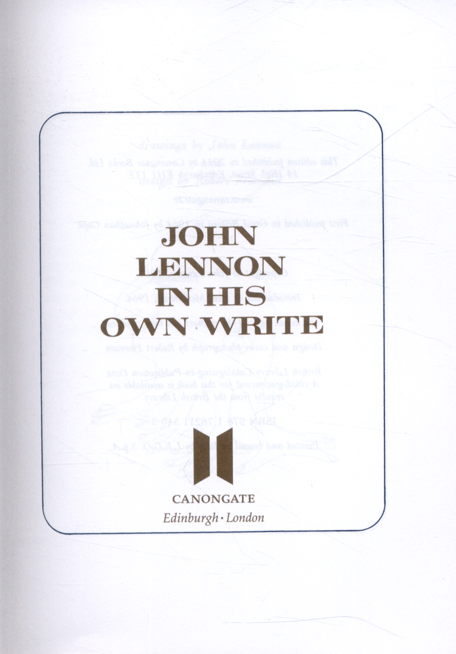 Anyway they didn't get me. I attended to varicous schools in Liddypol. And still didn't pass-much to my Aunties supplies. As a member of the most publified Beatles my and (P, G, and R's) records might seem funnier to some than this book, but as far as I'm conceived this correction of short writty is the most wonderfoul larf I've ever ready. In His Own Write is John Lennon's literary debut, a book of stories, drawings and poems that was first published in 1964 to great critical acclaim and became a phenomenon, selling over 600,000 copies in the UK alone and revealing a hitherto unseen side to Lennon's artistic output and talent.