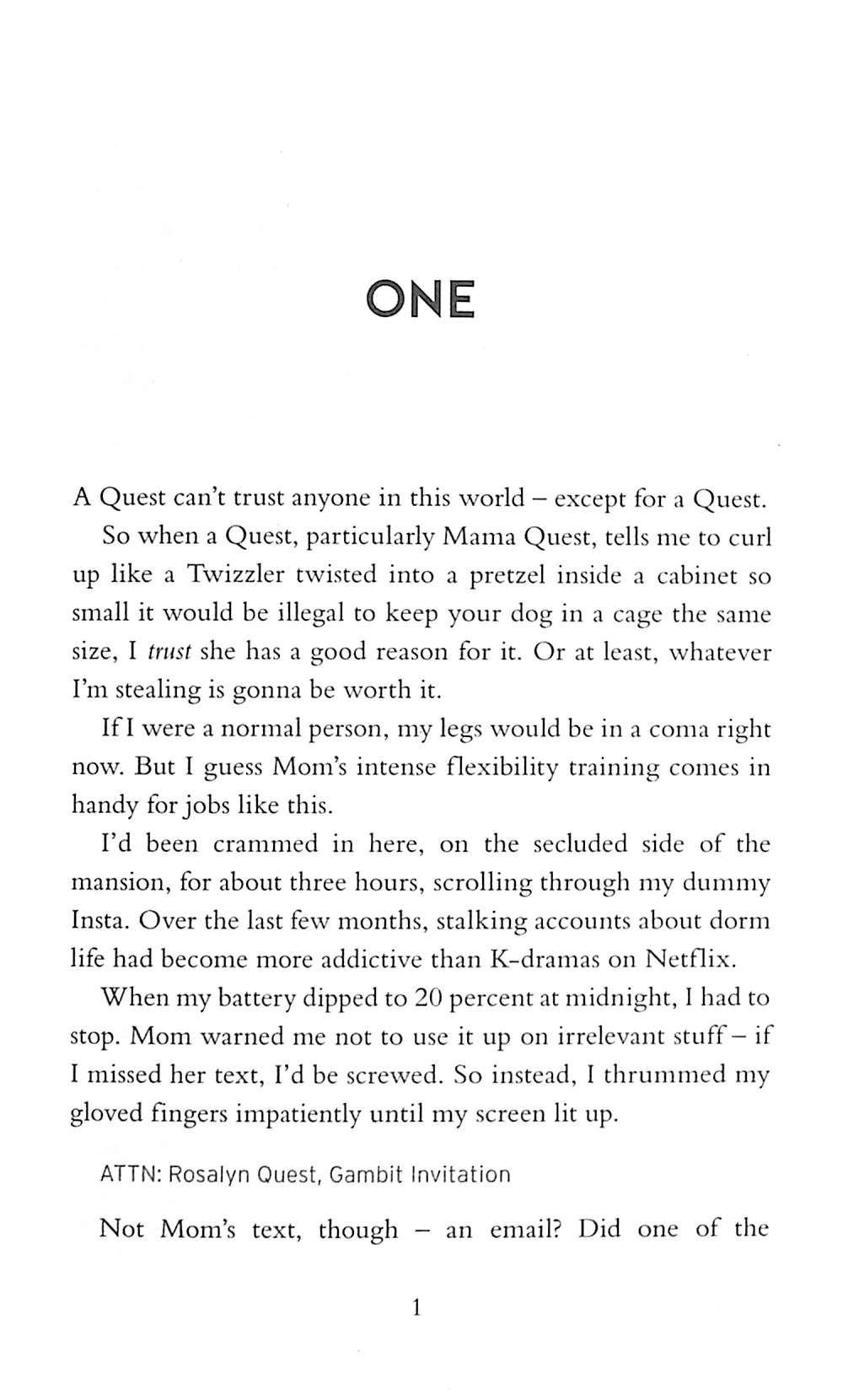 Soon to be a major movie and picked for Zoe Ball's Radio 2 Book Club, for fans of Jennifer Lynn Barnes and Suzanne Collins. 'Strap in for the ride with this twisty, fast-paced heist' Daily MailChallenge: Join the Thieves’ Gambit, a cut-throat competition to crown the world’s greatest thiefRule 1: Never fall in love with your opponentRule 2: The only thief you can trust is yourselfEndgame: Win the heist to save your family - and yourself . . . Seventeen-year-old Rosalyn Quest was raised by a legendary family of thieves with one rule: trust no one.