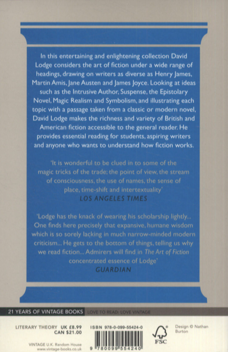 In this entertaining and enlightening collection David Lodge considers the art of fiction under a wide range of headings, drawing on writers as diverse as Henry James, Martin Amis, Jane Austen and James Joyce.