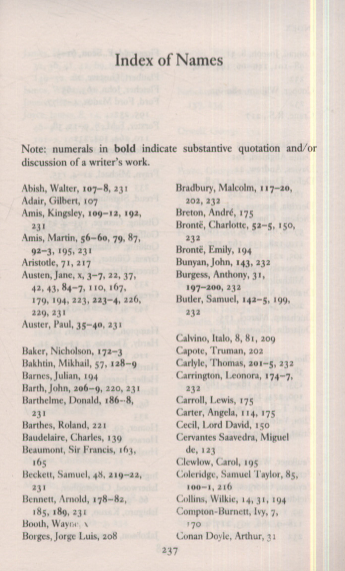 Looking at ideas such as the Intrusive Author, Suspense, the Epistolary Novel, Magic Realism and Symbolism, and illustrating each topic with a passage taken from a classic or modern novel, David Lodge makes the richness and variety of British and American fiction accessible to the general reader.