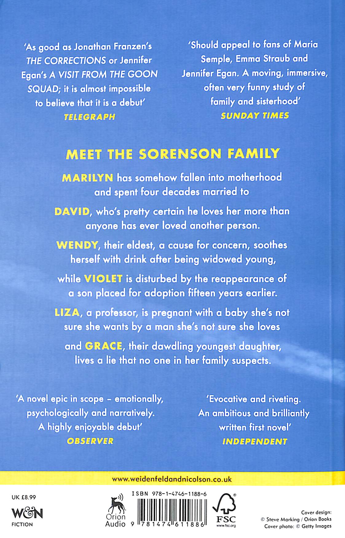 If you like reading about relationships, this one is for you.' Pandora SykesMEET THE SORENSON FAMILY. MARILYN has somehow fallen into motherhood and spent four decades married toDAVID, who's pretty certain he loves her more than anyone has ever loved another person. WENDY, their eldest, a cause for concern, soothes herself with drink after being widowed young,while VIOLET, lawyer-turned-stay-at-home-mother, is disturbed by the reappearance of a son placed for adoption fifteen years earlier. LIZA, a professor, is pregnant with a baby she's not sure she wants by a man she's not sure she lovesand GRACE, their dawdling youngest daughter, lives a lie that no one in her family suspects.