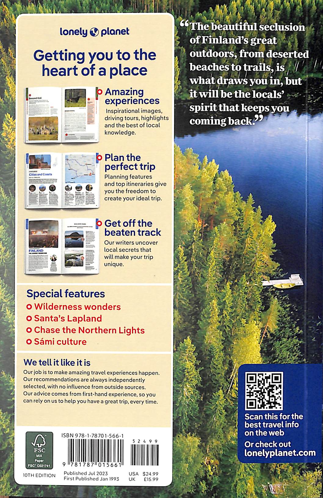 Relax in a traditional Finnish sauna, meet reindeers in Lapland and admire creative design in Helsinki; all with your trusted travel companion. Inside Lonely Planet's Finland Travel Guide: Lonely Planet's Top Picks - a visually inspiring collection of the destination's best experiences and where to have themItineraries help you build the ultimate trip based on your personal needs and interestsLocal insights give you a richer, more rewarding travel experience - whether it's history, people, music, landscapes, wildlife, politicsEating and drinking - get the most out of your gastronomic experience as we reveal the regional dishes and drinks you have to tryToolkit - all of the planning tools for solo travellers, LGBTQIA+ travellers, family travellers and accessible travelColour maps and images throughoutLanguage - essential phrases and language tipsInsider tips to save time and money and get around like a local, avoiding crowds and trouble spotsCovers Helsinki, Turku and the South Coast, Åland Archipelago, Tampere, Pirkanmaa and Häme, the Lakeland, Karelia, West Coast, Oulu, Kainuu and Koillismaa, Lapland, and moreAbout Lonely Planet:Lonely Planet, a Red Ventures Company, is the world's number one travel guidebook brand.