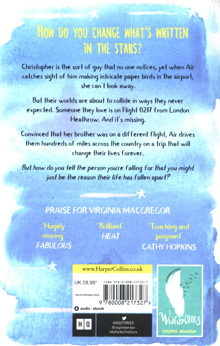 Virginia MacGregor has created a page turning book that flowed from start to finish’ Books Love Readers ‘A beautiful, evocative story . . . an extraordinary novel that had me turning the pages late into the night’ WhisperingStories.com * * * How do you change what’s already written in the stars? Christopher is the sort of guy that no one notices, yet when Air catches sight of him making intricate paper birds in the airport, she can’t look away. But their worlds are about to collide in ways they never expected.