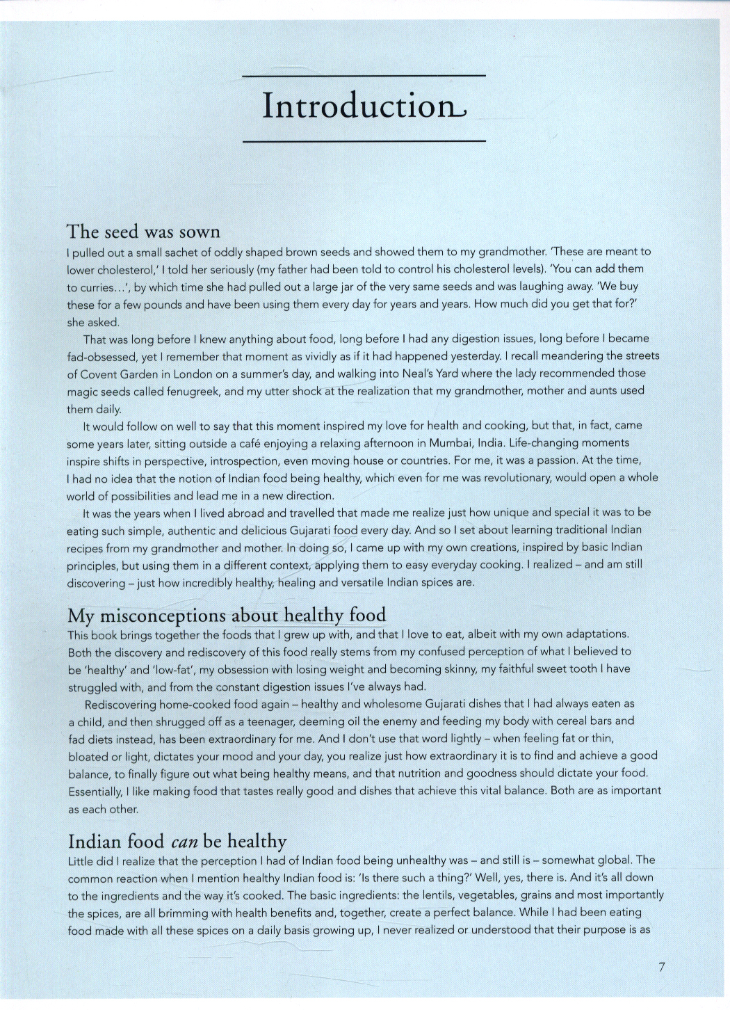 Mira Manek's celebrates her family's heritage and traditions in this delicious and enchanting take on Gujurati Indian food, rich with beautiful dishes and reminiscences of Manek's family roots. Indian food is an internationally popular cuisine, yet, unfairly, it is often considered to be heavy, rich and indulgent.