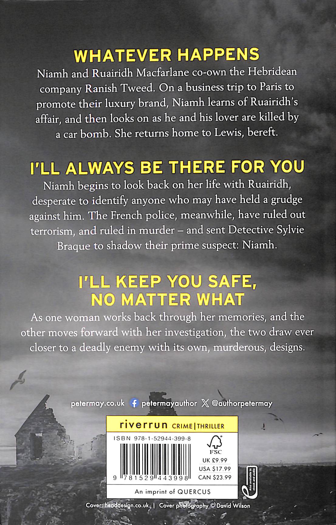 The French police, meanwhile, have ruled out terrorism, and ruled in murder - and sent Detective Sylvie Braque to shadow their prime suspect: Niamh. I'LL KEEP YOU SAFE, NO MATTER WHATAs one woman works back through her memories, and the other moves forward with her investigation, the two draw ever closer to a deadly enemy with their own, murderous, designs. 'Peter May is a writer I would follow to the ends of the earth' New York Times