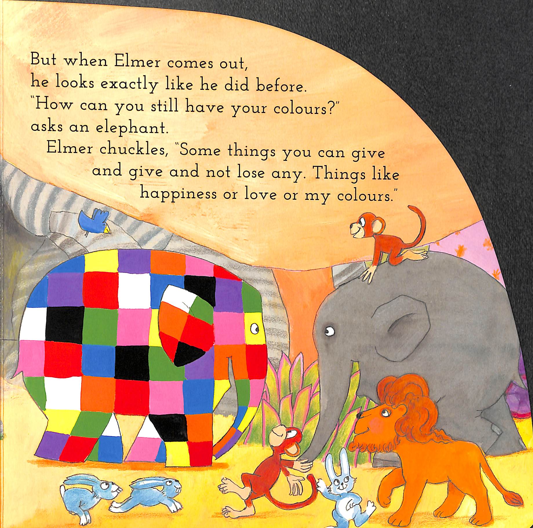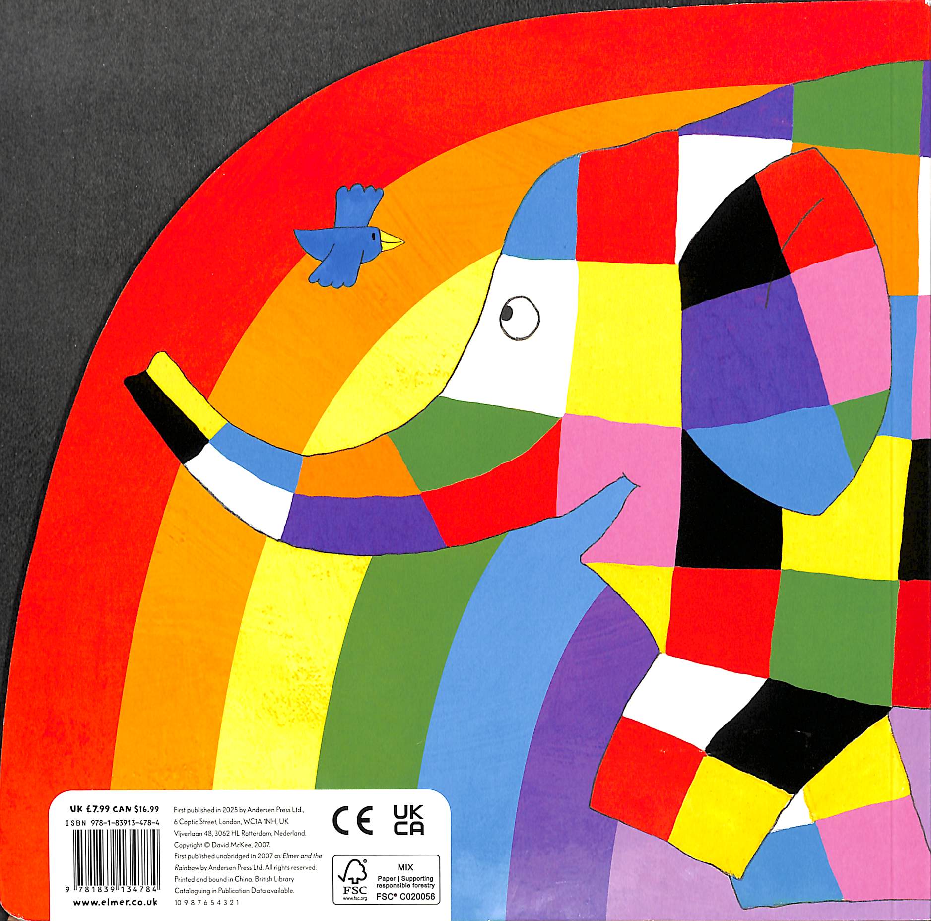 Some things you can give and not lose any, like happiness, love and colour. In Elmer the patchwork elephant's chunky, rainbow-shaped board book, Elmer helps the animals put the colours back into a mysterious pale rainbow by giving some of his own colours away in an act of kindness and love. A perfect introduction to the classic Elmer and the Rainbow story for the very youngest readers, with an abridged text of the best-loved tale.