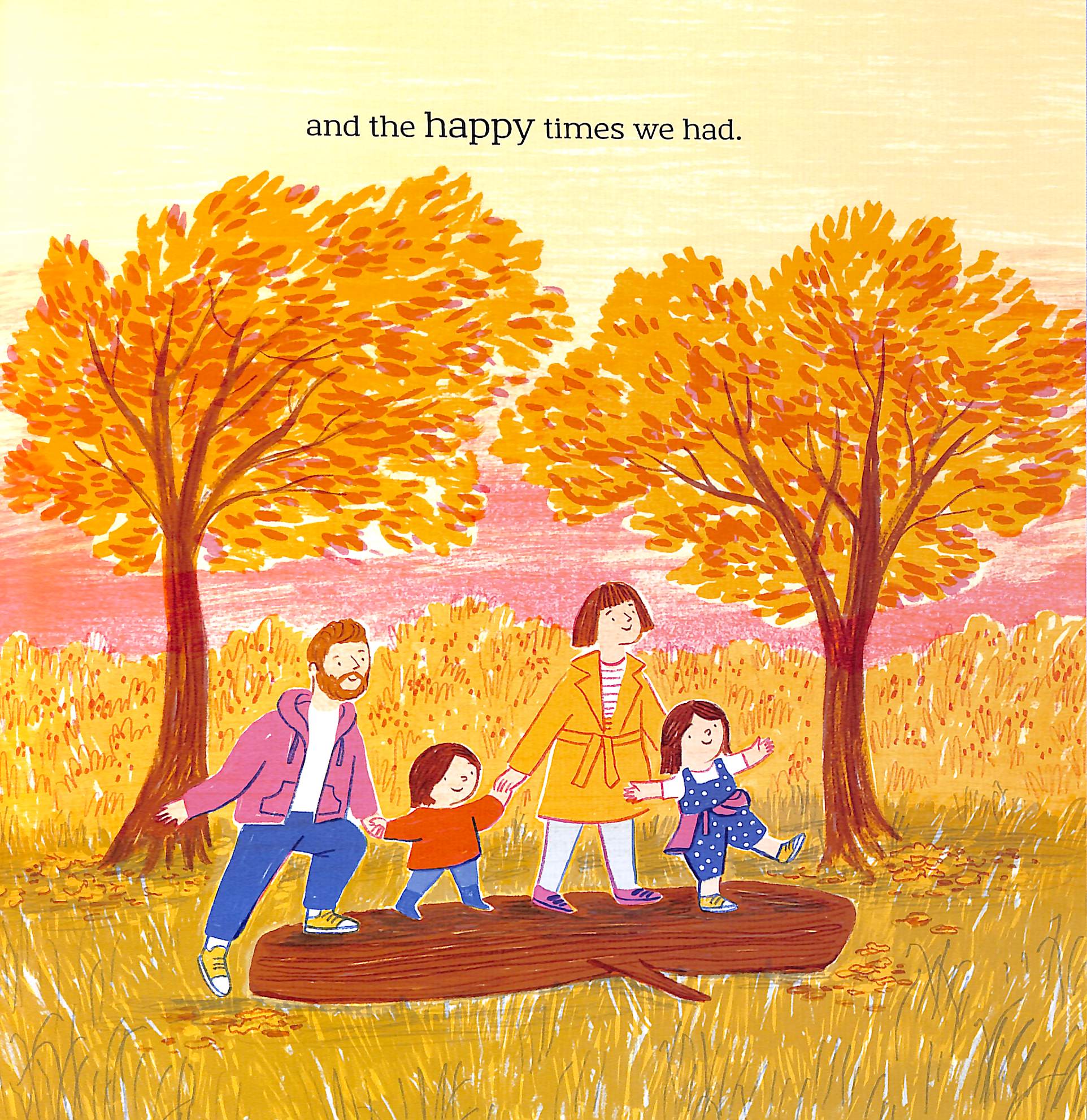 The reader is given permission to feel all of those difficult feelings that come with grief and also to celebrate happiness and life.