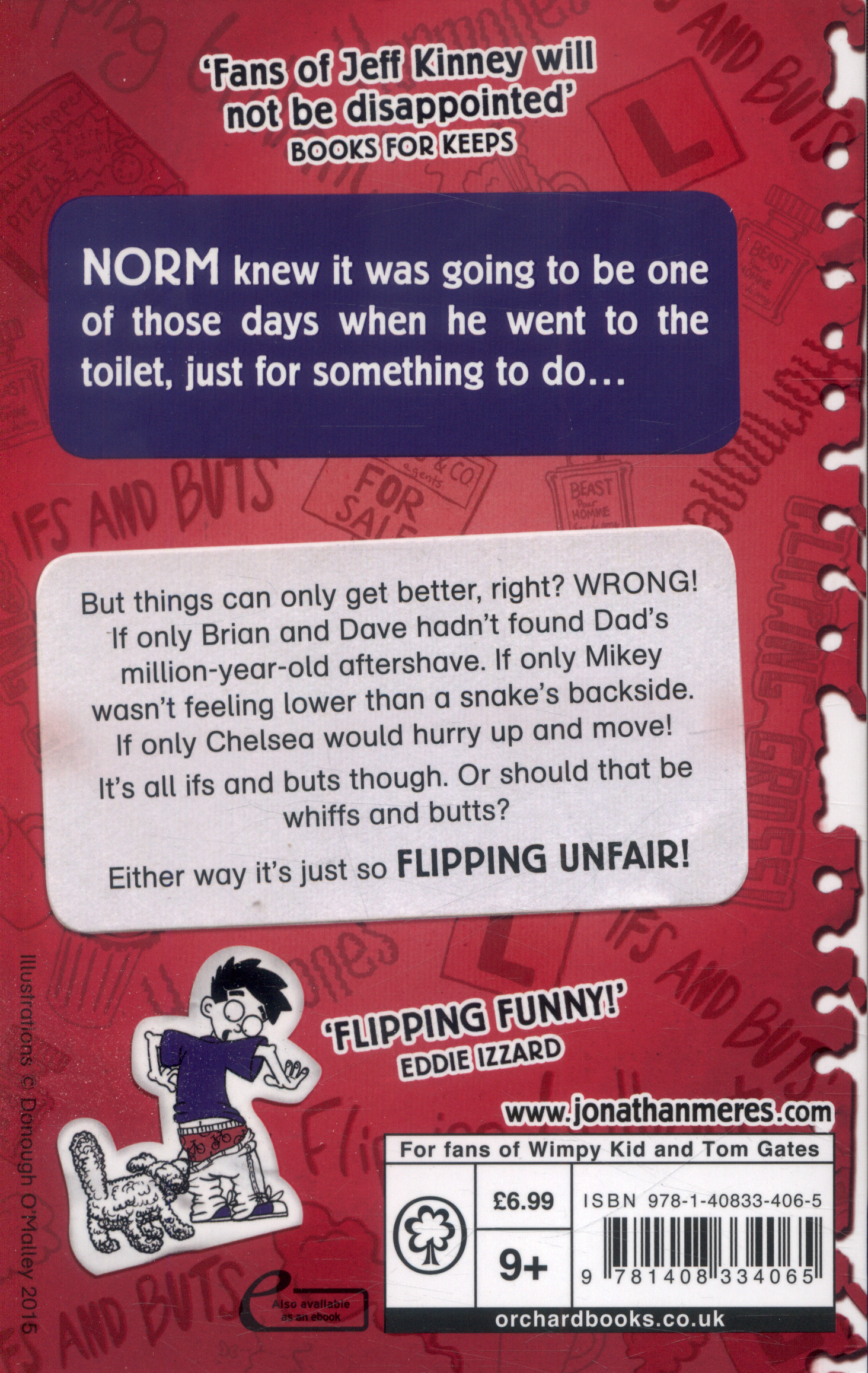 Perfect for fans of Tom Gates and Diary of a Wimpy Kid. Norm knew it was going to be one of those days when he went to the toilet, just for something to do... But things can only get better, right? WRONG! If only Brian and Dave hadn't found Dad's million year old aftershave. If only Mikey wasn't feeling lower than a snake's backside. If only Chelsea would hurry up and move!It's all ifs and buts though. Or should that be whiffs and butts? Either way it's just so flipping unfair! With brilliantly funny illustrations throughout from Donough O'Malley. Praise for Jonathan Meres: 'Hilarious stuff from one of my comic heroes!' - Harry Hill 'Jonathan Meres is flipping funny!' - Eddie Izzard