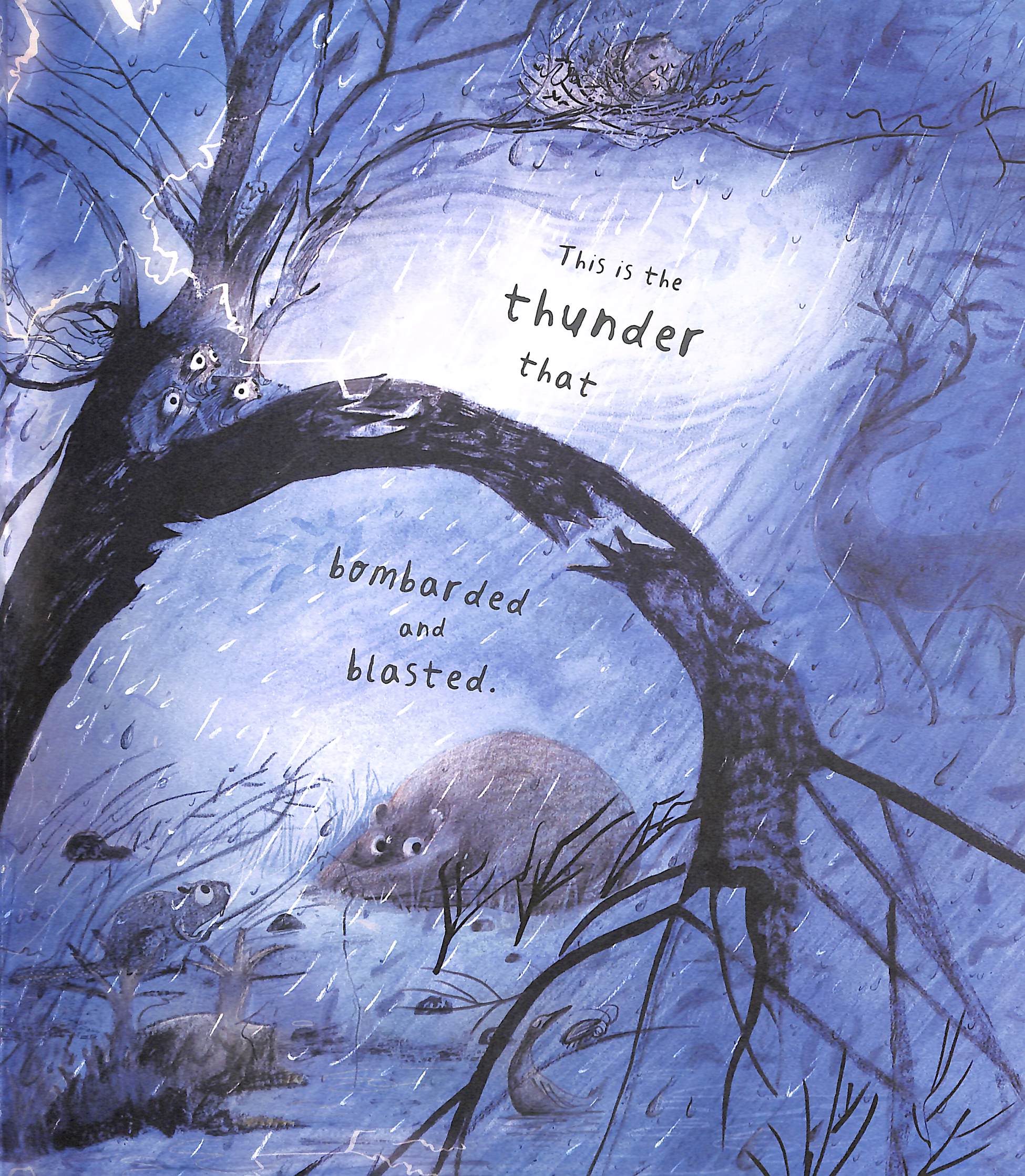 This is the wind that whipped and whirled. This is the lightning that zipped and zapped. This is the thunder that bombarded and blasted. And these are the animals... all soggy and sad. When a terrible storm tears through the forest, everything seems lost.