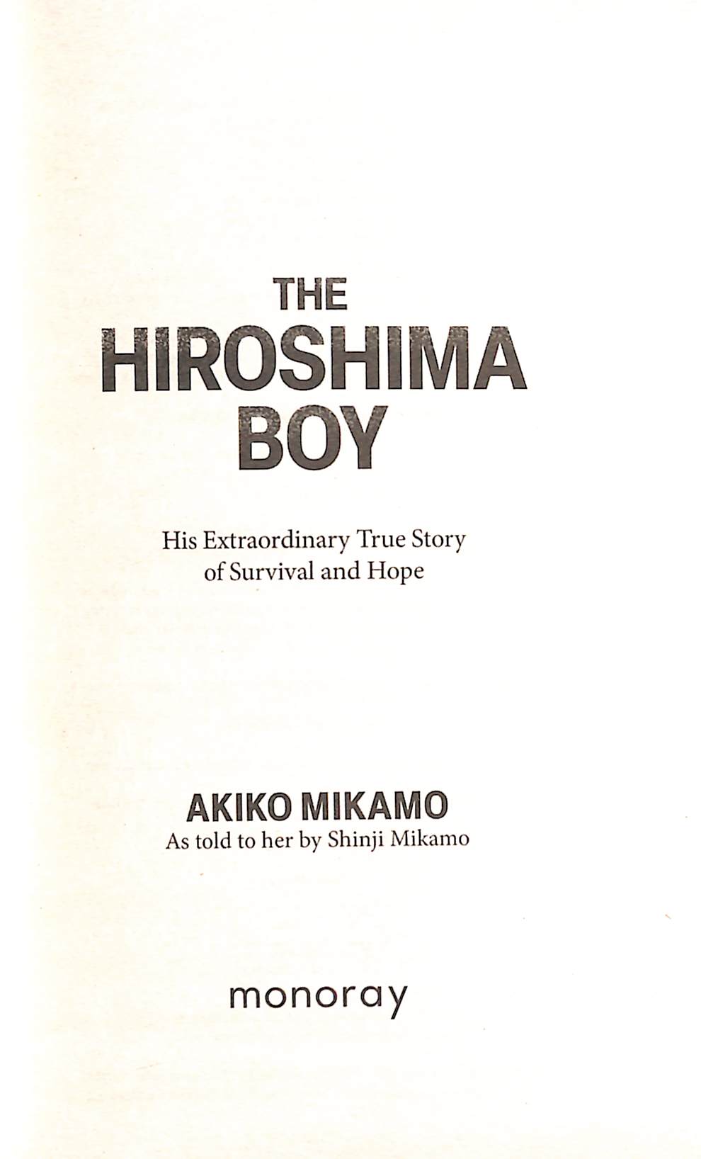 But to do so he must leave his father, not knowing whether he will ever see him again... Told simply and powerfully, The Hiroshima Boy is an extraordinary first-person account of survival, suffering, courage and hope.
