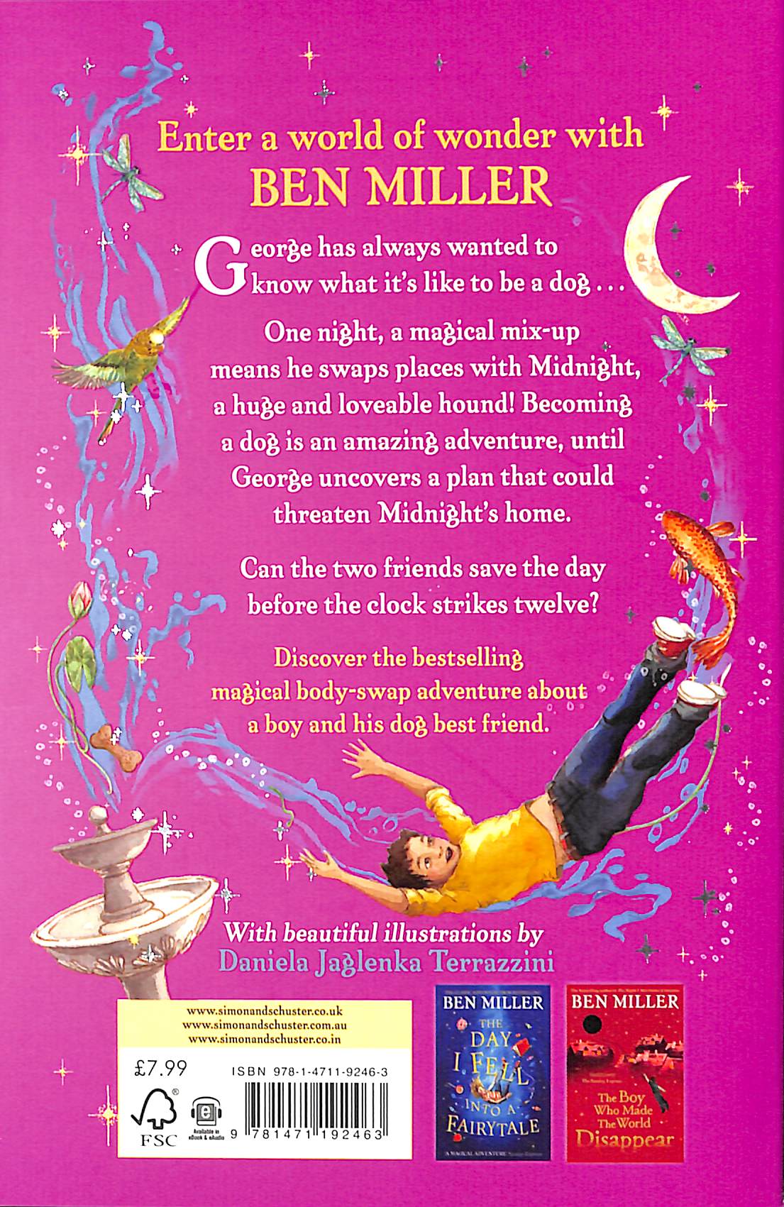Can the two friends save the day before the clock strikes twelve and leaves them stuck in each other's bodies forever?A magical race-against-time for a boy and his dog best friend – discover the funny and heartwarming classic storytelling from bestselling author and beloved actor, Ben Miller, with beautiful illustrations from Daniela Jaglenka Terrazzini.