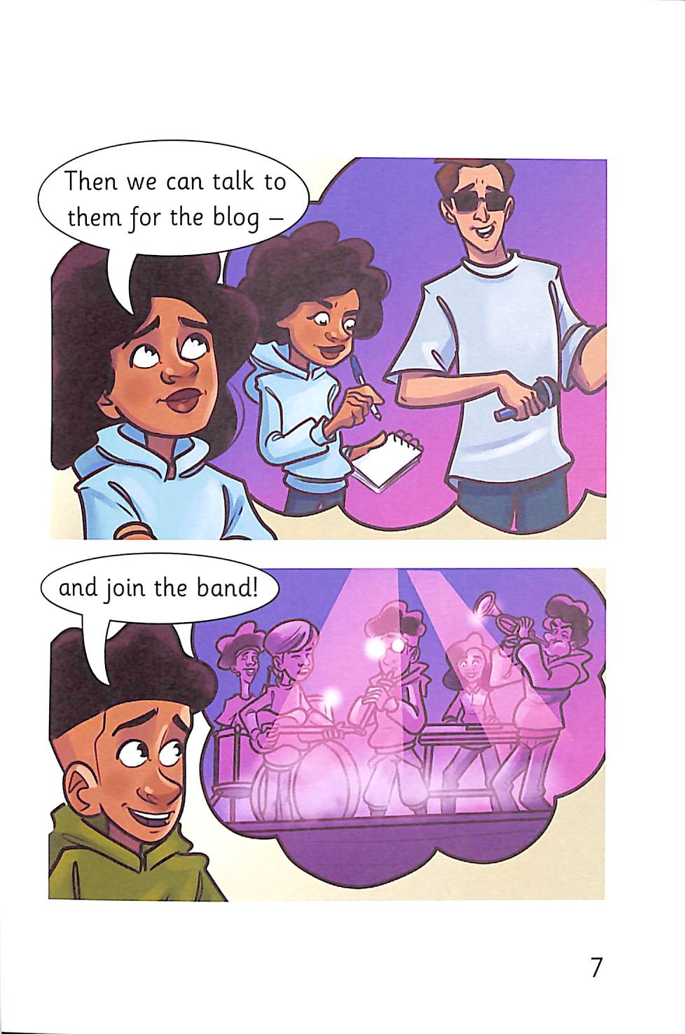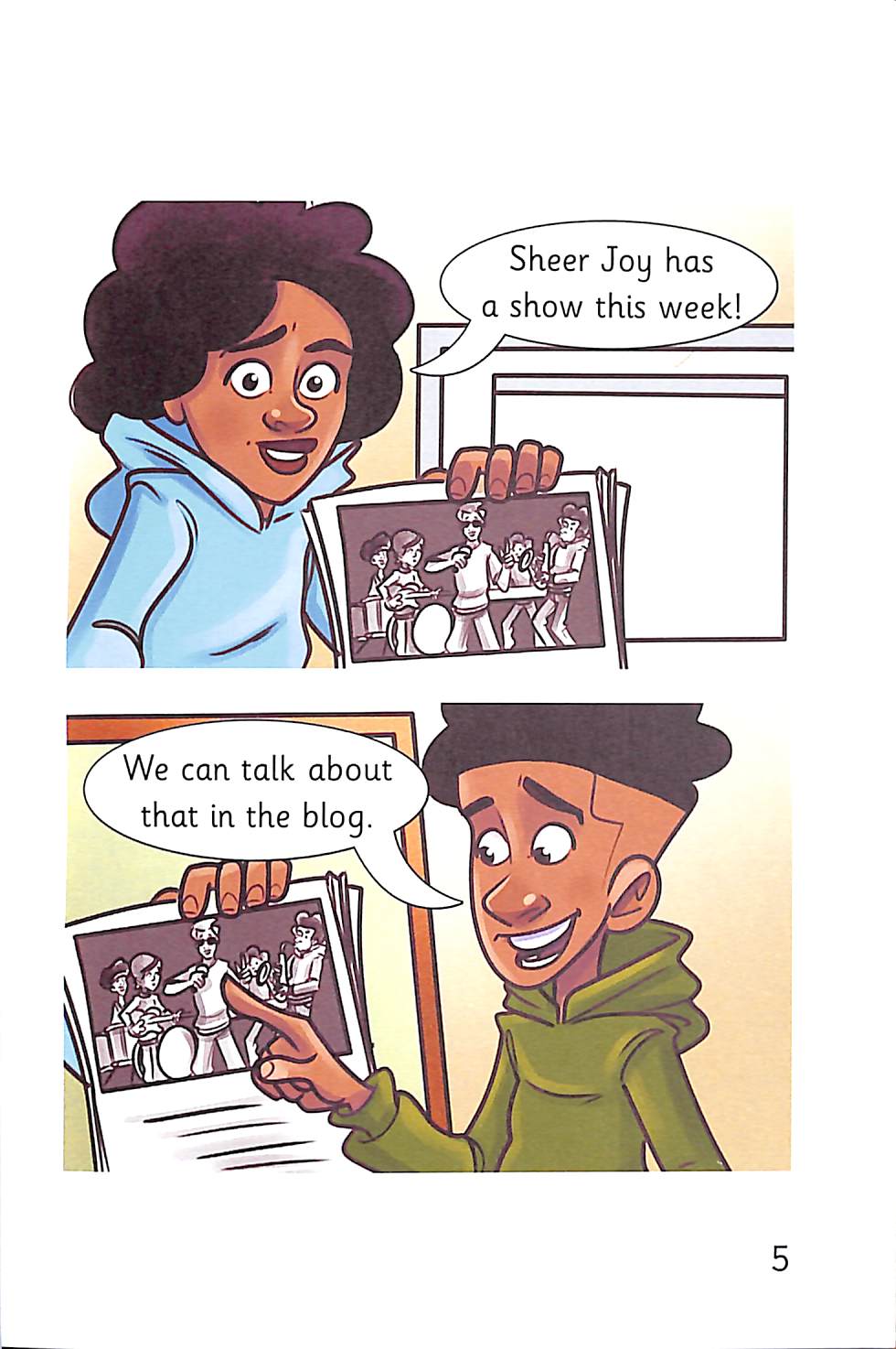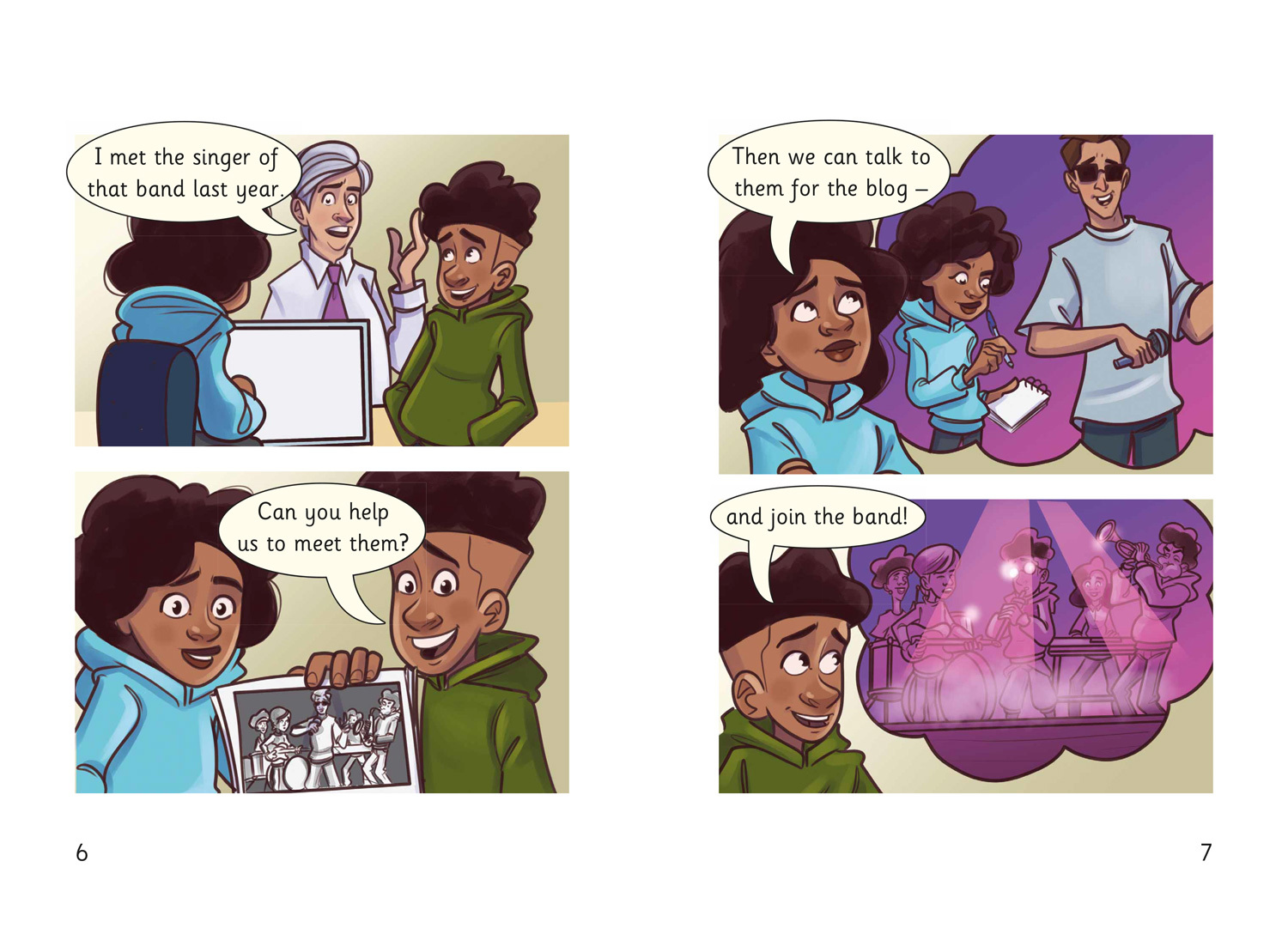 They can be read in class or at home and are supported by free teacher notes. Twins Kay and Aiden are excited to interview their favourite band at a concert.