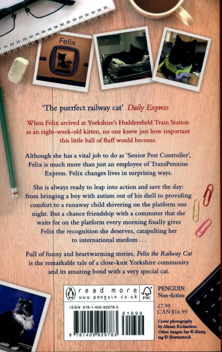It will make you laugh and it will make you cry: Felix The Railway Cat is the SUNDAY TIMES bestselling, extraordinary tale of a close-knit community and its amazing bond with a very special cat. 'The global sensation' Daily Telegraph________ When Felix arrived at Yorkshire's Huddersfield Train Station as an eight-week-old kitten, no one knew just how important this little ball of fluff would become. Although she has a vital job to do as 'Senior Pest Controller', Felix is much more than just an employee of TransPennine Express.