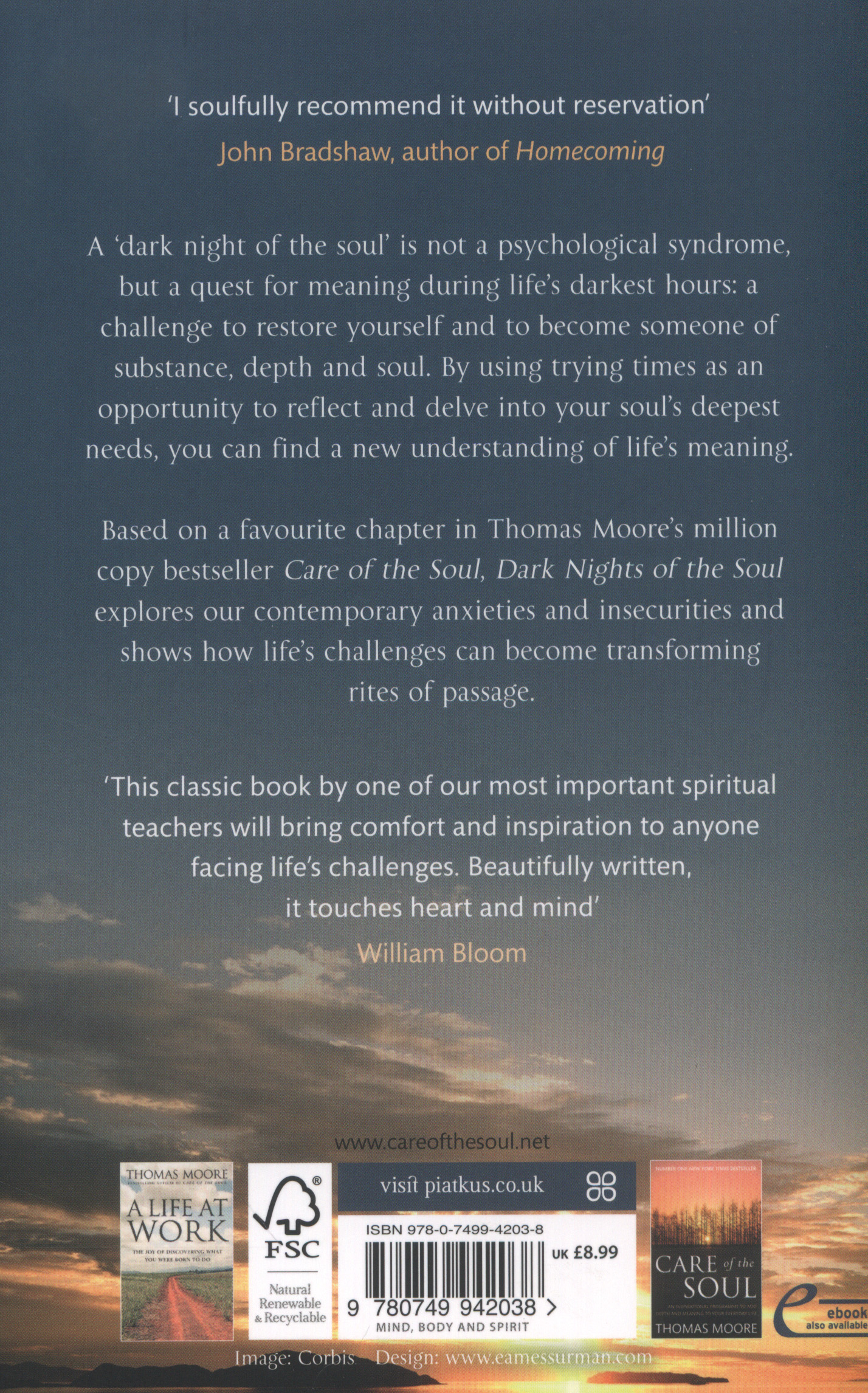 Dark Nights of the Soul has its roots in a favourite chapter in Thomas Moore's million copy bestseller, Care of the Soul.