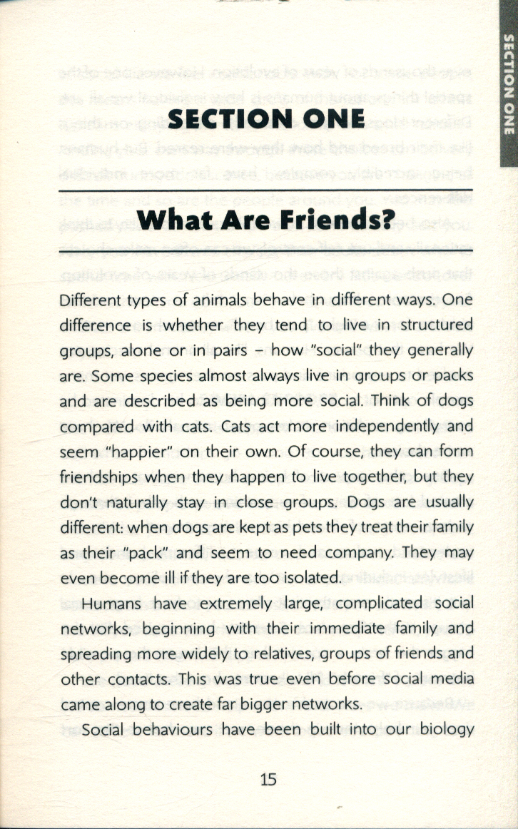 Contents include a section on making friends, keeping friendships strong, and what happens when they break down – as well as a look at online friendships, cyber-bullying, toxic friendships and frenemies, and empathy.