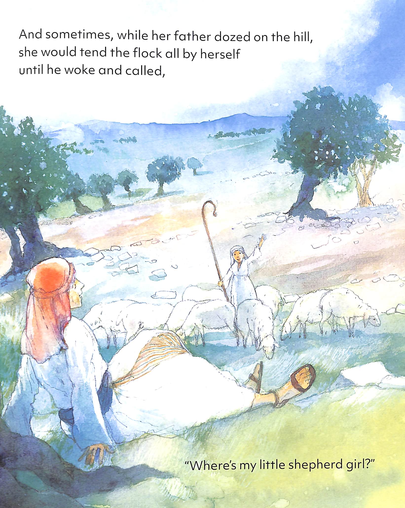 "The light of a big star filled her room and lit the whole wide world outside."A little shepherd girl loves her father greatly, and adores spending time with him on the hillside, tending his flocks.