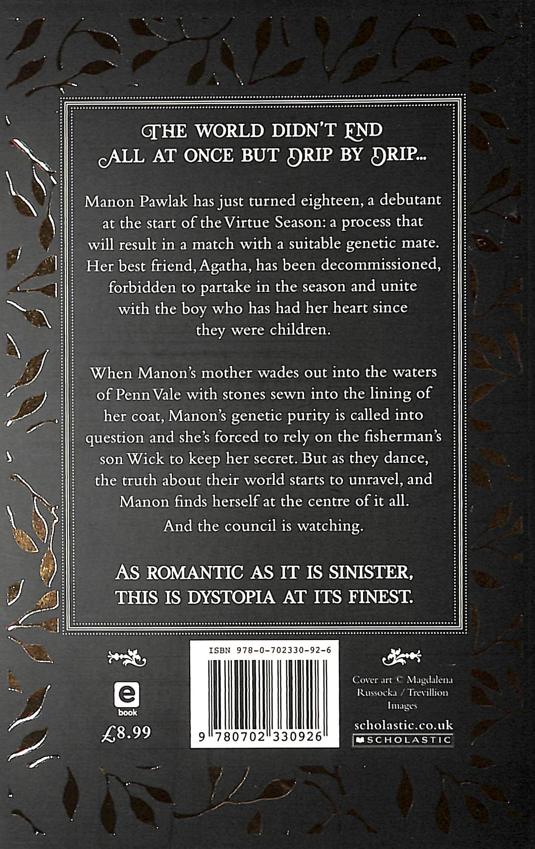 "An intensely readable YA debut with undertones of Atwood and a vivid, immersive setting." The Guardian"A dystopia unlike any other I've seen, combining debutante courting etiquette with realistic climate change warnings." - Lauren James, author of The Quiet at the End of the World"Compelling as it is searingly romantic." - Elizabeth Lee, author of The Cunning Women "An utterly compelling dystopia...A simply stunning debut." - Kat Ellis, author of Harrow Lake "The must-have book of the season for those who enjoy their dystopia wrapped in romance." - Bex Hogan, author of Viper "Immersive, beautifully written and achingly romantic, I state my preference for this gorgeous dystopian debut." - Sue Cunningham, author of Totally Deceased The world didn't end all at once but drip by drip... Manon Pawlak has just turned eighteen, a debutant at the start of the Virtue Season: a process that will result in a match with a suitable genetic mate.