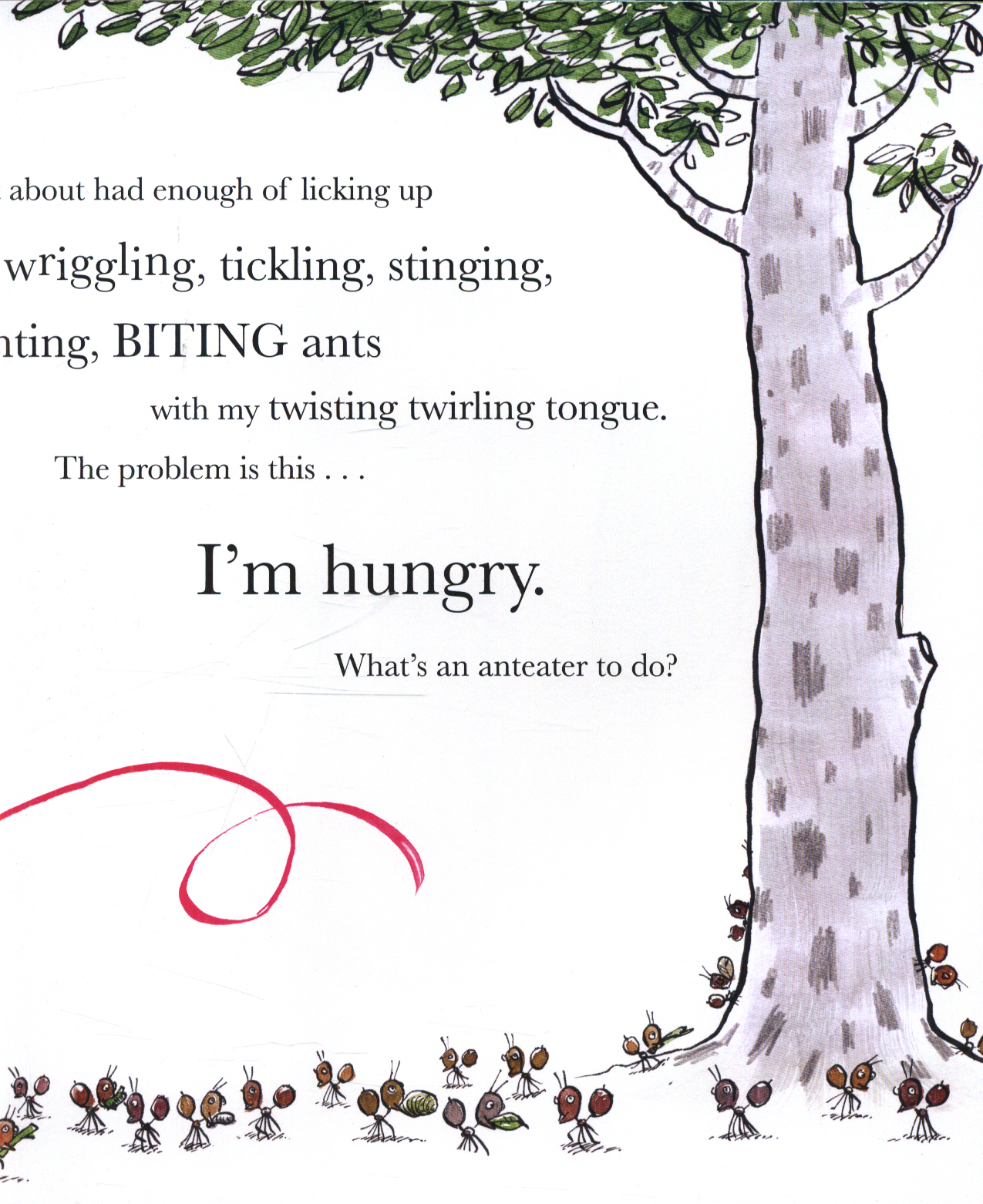 Seared like steak or squished in a sausage ... sundried, salted or sliced ... But watch out, anteater! While you're salivating, this sneaky ant has got an escape plan up its sleeve ... Take one starving anteater and one slippery ant, and you have the super ingredients for a hilarious, stylish story.