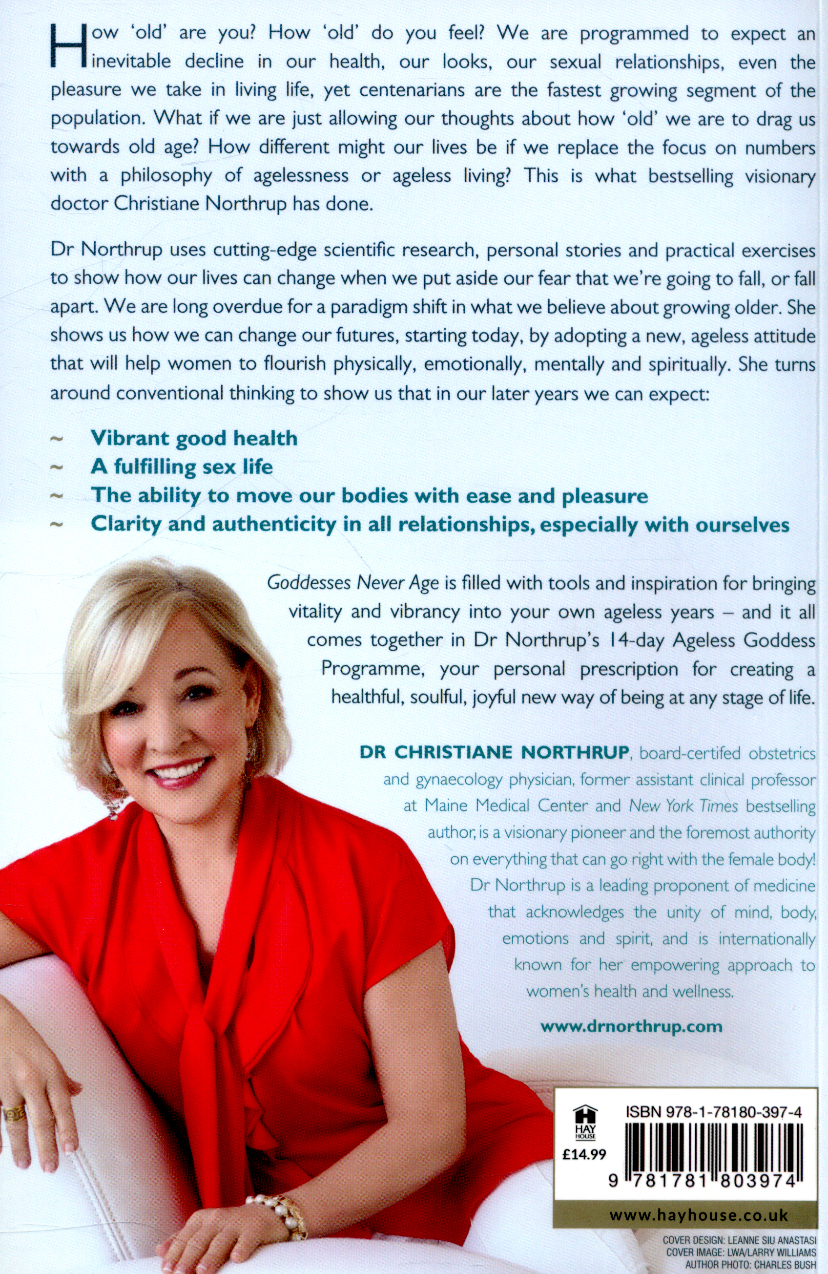As Christiane Northrup MD shows us in this profoundly empowering book, we have it in us to make growing older an entirely different experience, for both our bodies and our souls. In chapters that blend personal stories and practical exercises with the latest research on health and ageing, Dr Northrup lays out the principles of ageless living, from rejecting processed foods to releasing stuck emotions, from embracing our sensuality to connecting deeply with our Divine Source.