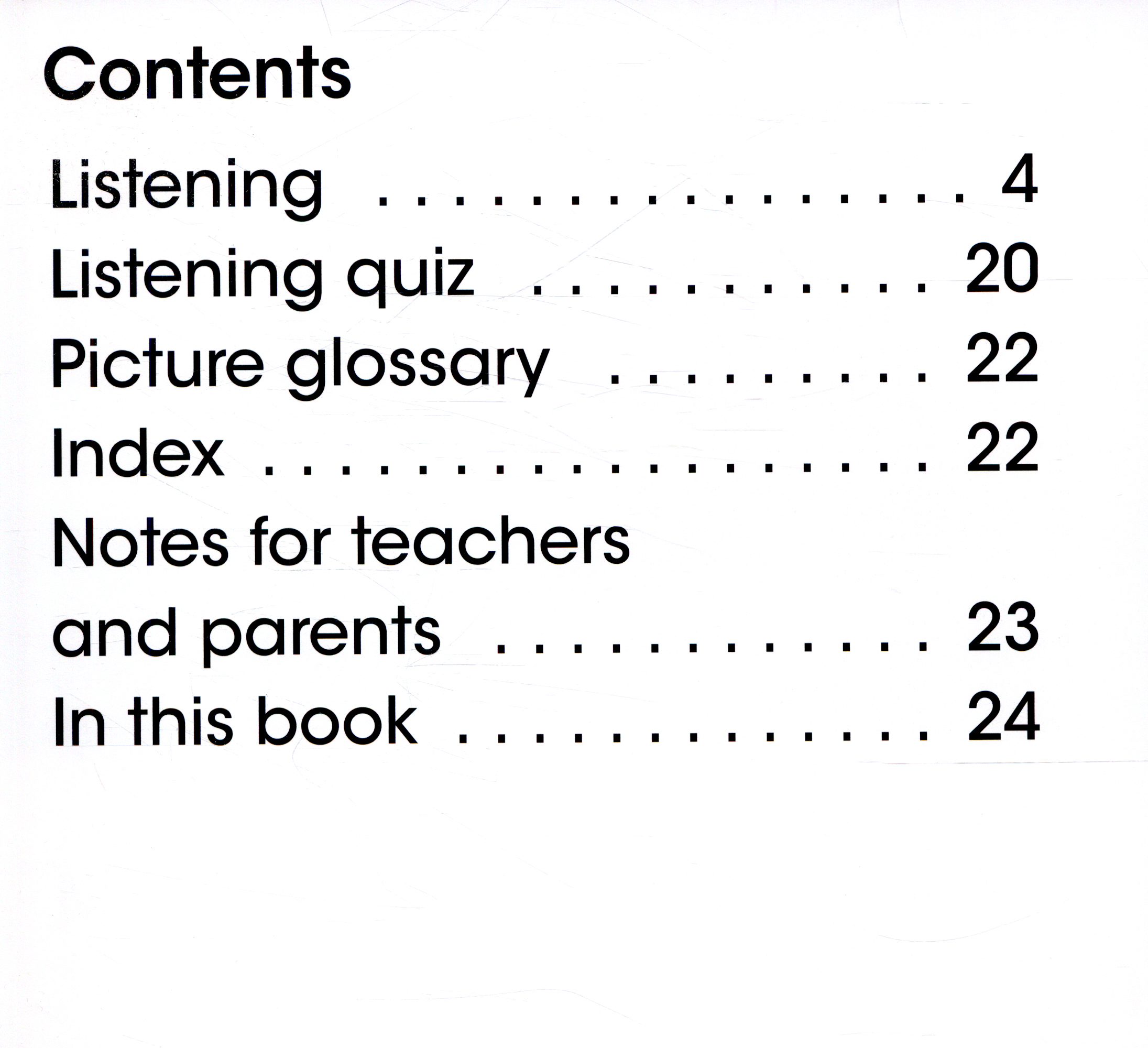 This book takes a very simple look at listening. Levelled text with repeated use of high frequency words makes the book perfect for beginning readers, while bright, colourful illustrations complement the text and maintain readers' interest.