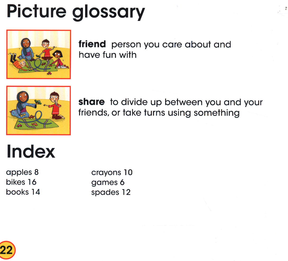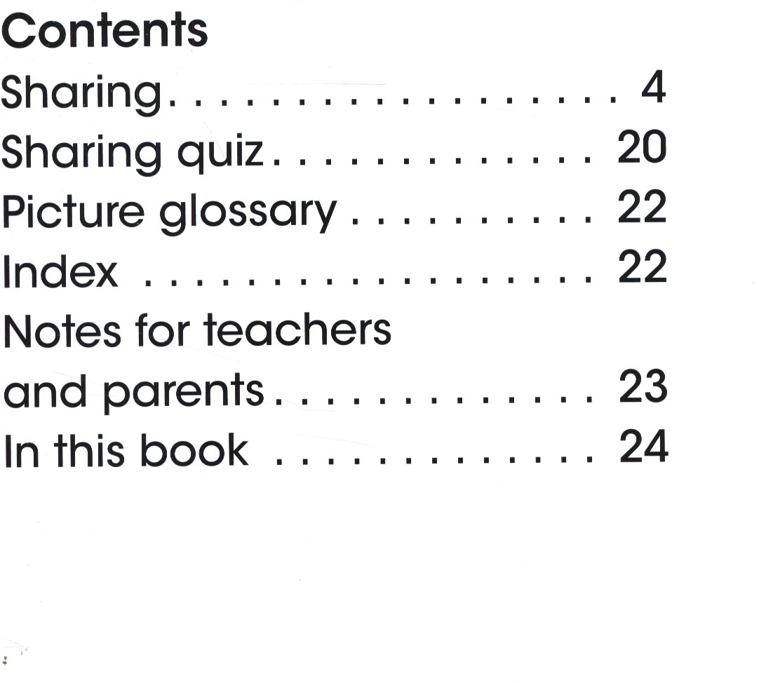 This book takes a very simple look at sharing. Levelled text with repeated use of high frequency words makes the book perfect for beginning readers, while bright, colourful illustrations complement the text and maintain readers' interest.