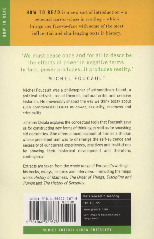 Extracts are taken from the whole range of Foucault's writings - his books, essays, lectures and interviews - including the major works History of Madness,The Order of Things, Discipline and Punish and The History of Sexuality.