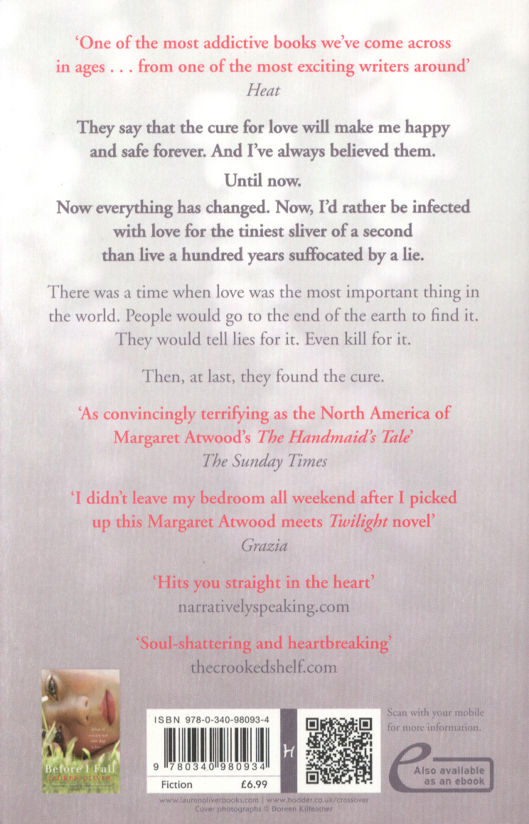 'A dystopian Romeo and Juliet story that deserves to be as massive as Twilight' StylistThey say that the cure for love will make me happy and safe forever. And I've always believed them. Until now. There was a time when love was the most important thing in the world.