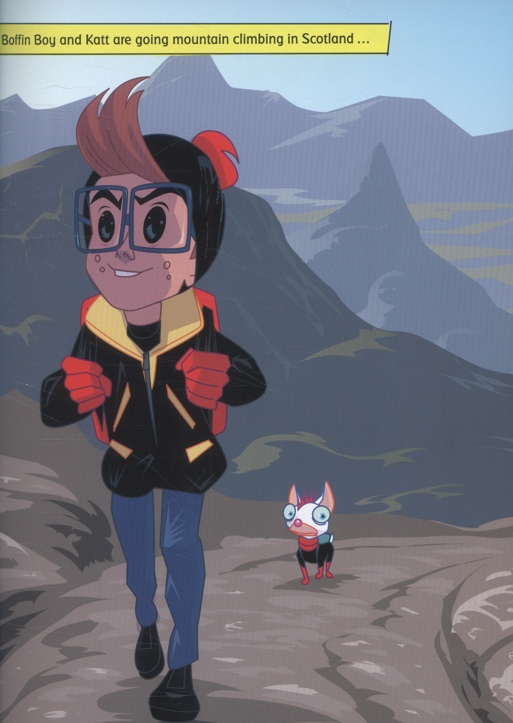 Boffin Boy and Katt the Dog bump into a yeti when they go mountain climbing in Scotland. Or, was it a bloke in a hairy suit? Time to find out! The team ends up trapped in the future, where humans have become yetis and everyone has to eat lizards.