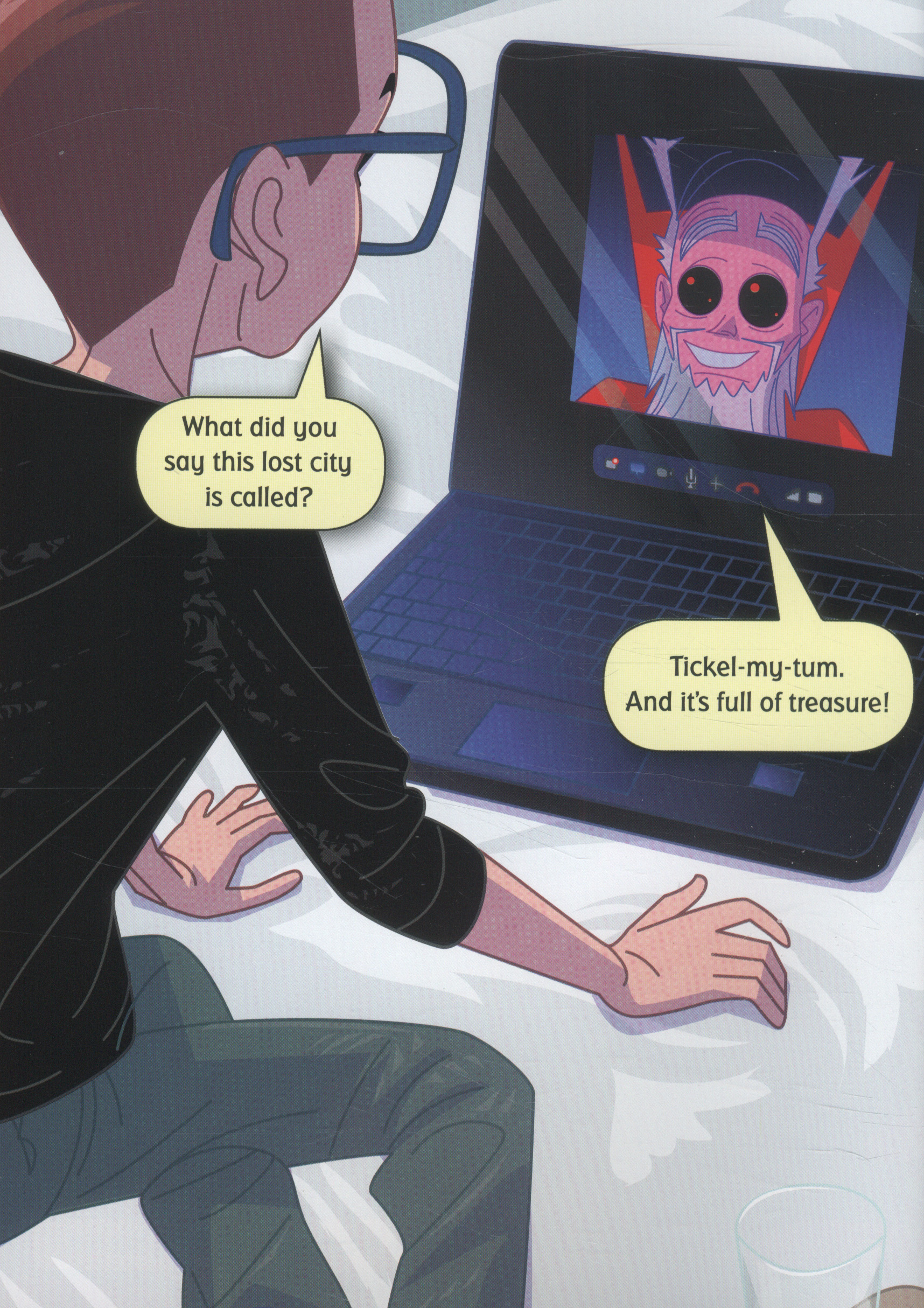 He persuades Boffin Boy to travel through the desert with him to find Tickel-My-Tum, a lost city full of treasure.