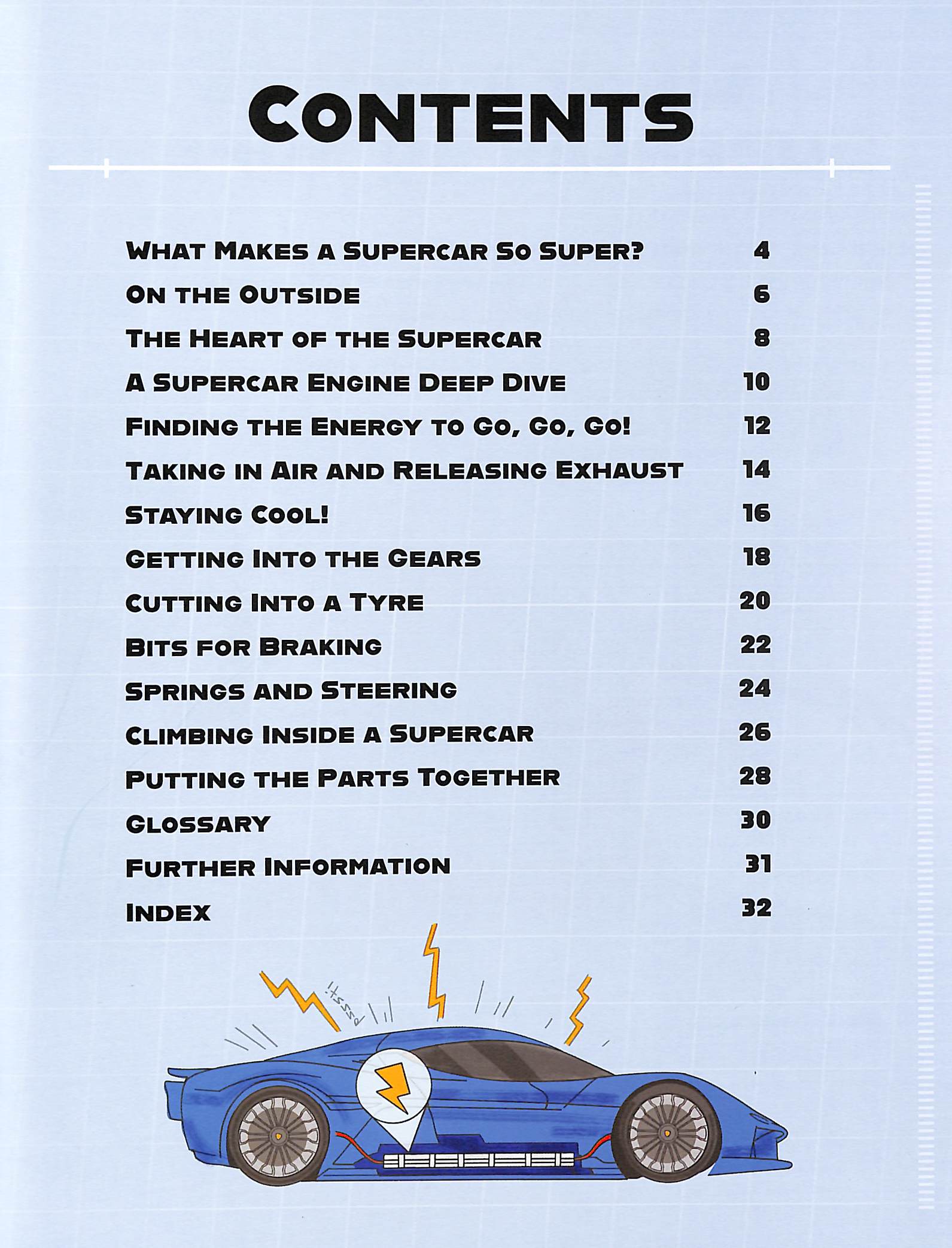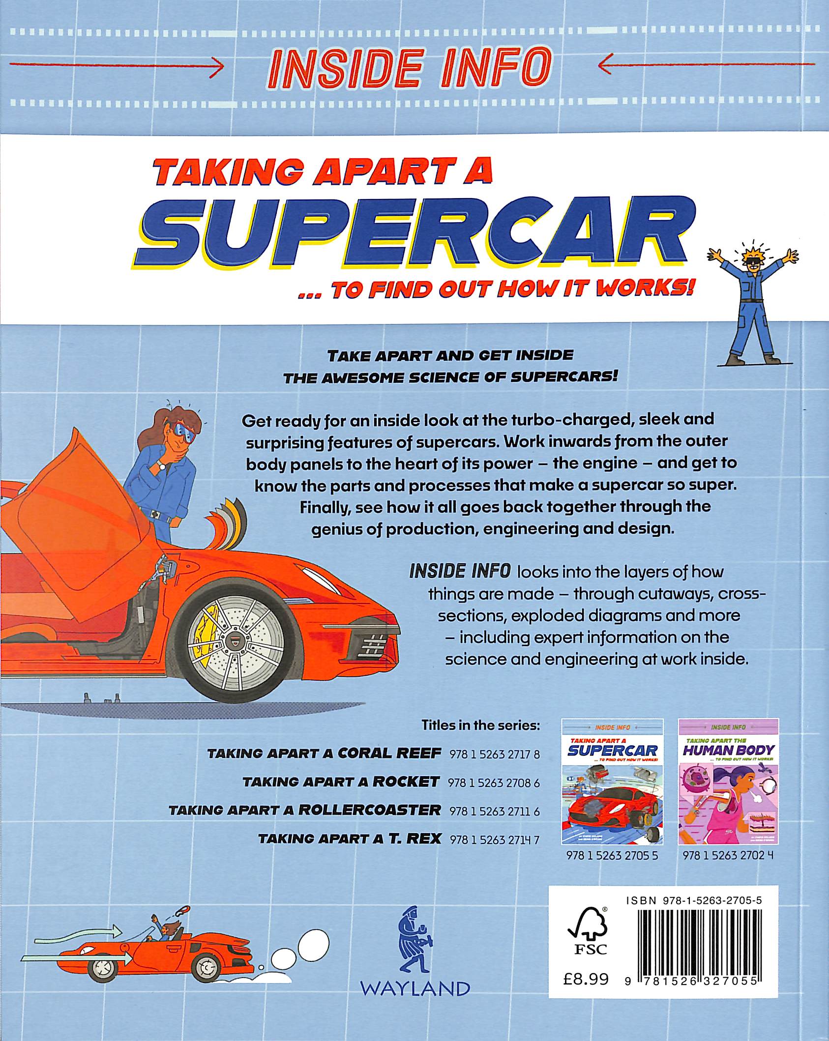 Finally, see how it all goes back together through the genius of production, engineering and design. Contents include: What makes a supercar so super? / The outside / The heart / Engine deep dive / Finding the energy / Taking in air and releasing exhaust / Staying cool / Gears/ Tyres / Brakes / Springs and steering / Seats and interior / Putting the parts togetherInside Info is a stylish and engrossing series of books diving into the layers of things kids are curious about - giving them the chance to pull it all apart and put it back together again, while learning STEM fundamentals!