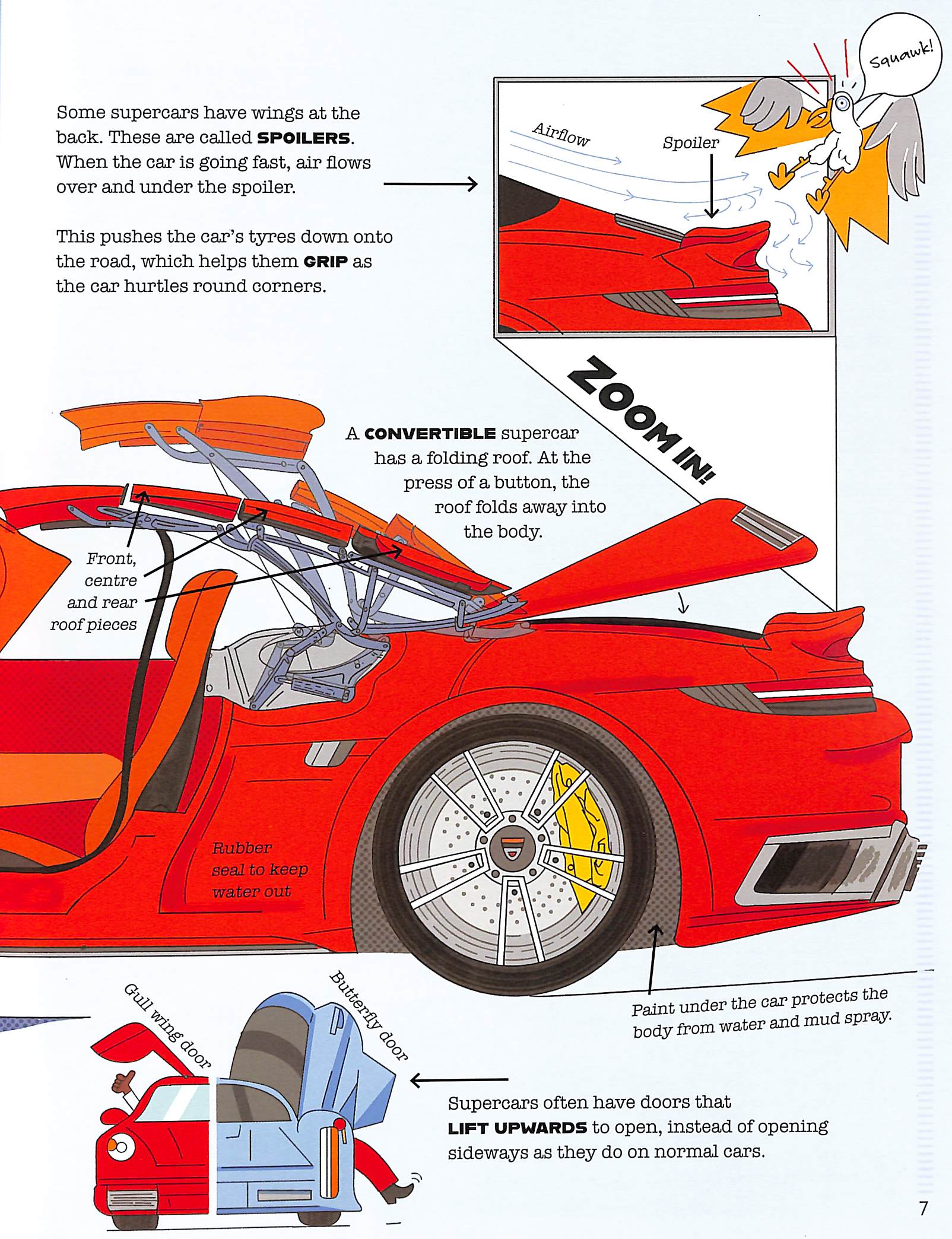 Full of cross-sections, cutaways, exploded diagrams, labels, jokes and Easter-egg details for the curious reader aged 7+ to discover. The series presents the Inside Info of: Supercars, A Rocket, A Rollercoaster, A T. rex, The Human Body and A Coral Reef