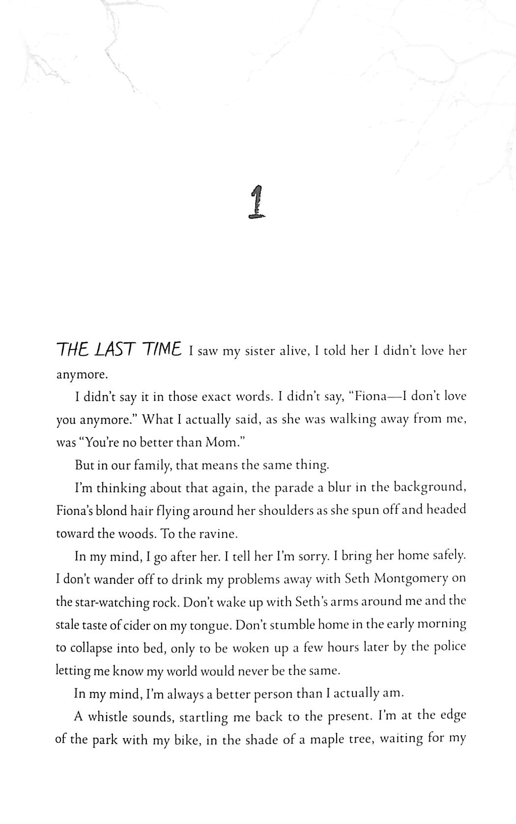 But, one year later, Thatcher is found dead at the bottom of the same ravine and Addie is forced to admit she was wrong. Dodging corrupt police and the even more corrupt wealthy Montgomery family, Addie needs help to avenge her sister's death and she turns to the only person she hasn't managed to push away: Seth.