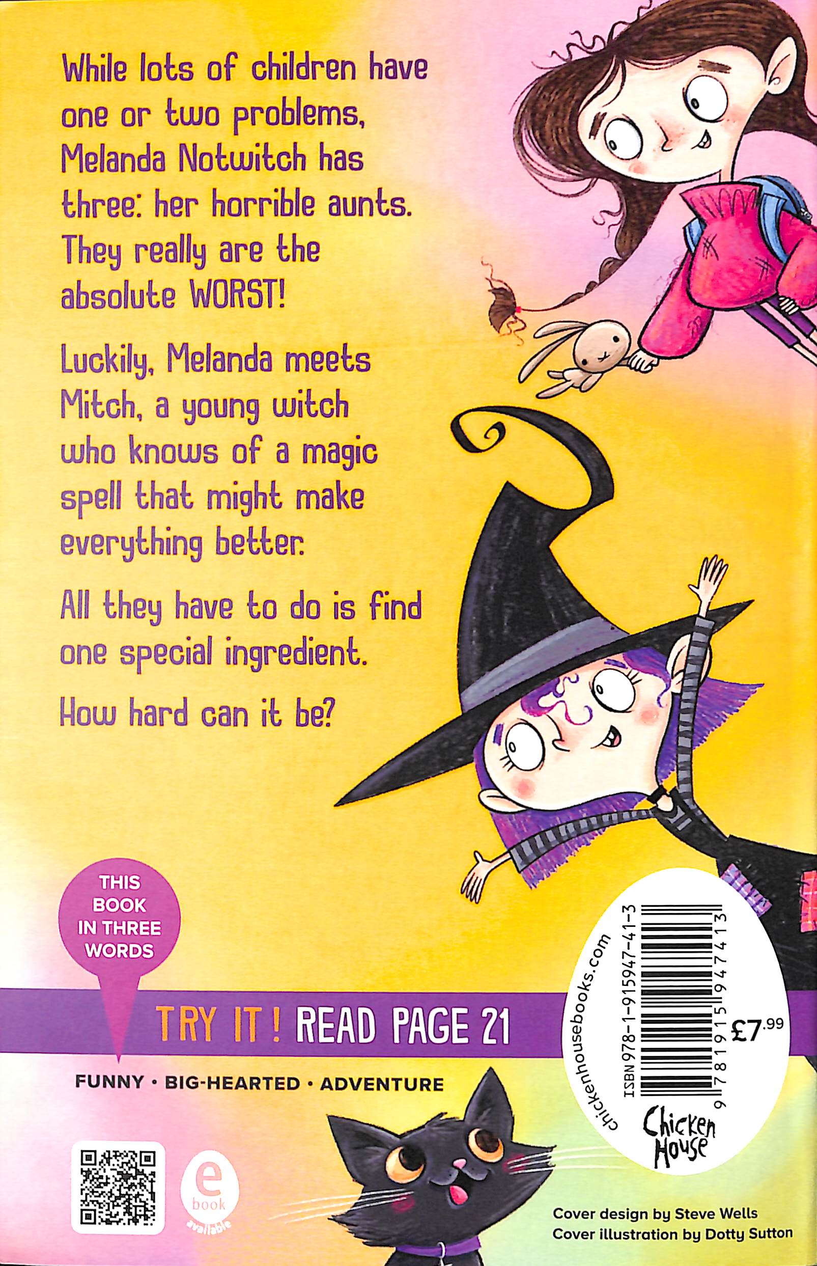 They really are the absolute WORST!  Luckily, Melanda meets Mitch, a young witch who knows of a magic spell that might make everything better.  All they have to do is find one special ingredient.  How hard can it be?  Book 1 in a big-hearted and funny adventure series in the spirit of Roald Dahl, perfect for ages 7–11 Brimming with loathsome villains, unexpected heroes, extraordinary set pieces and an almost-talking cat! With laugh-out-loud funny illustrations from Dotty Sutton The adventure continues in book 2, The Notwitches: Prison Break!