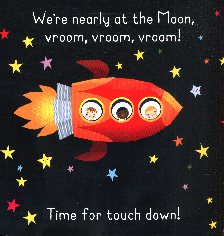 With shiny foil to focus on and bright colour to capture and keep their attention, this book will be revisited time and time again - and also be interesting to older toddlers. The shiny foil and big touch-and-feel patches make this book a perfect present. Simple text and lots of sounds to make - whoosh! - make the book easy to use and encourage carer and child interaction.