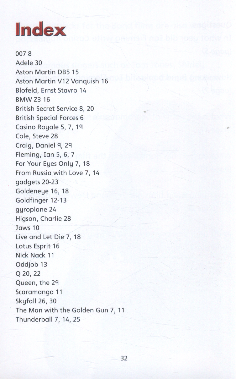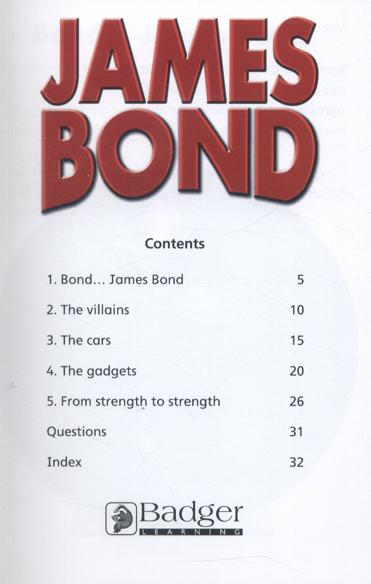 Meet Bond... James Bond. Take a look at the cars, gadgets and villains that have made James Bond so famous all over the world. WOW! Facts is a progressively levelled series of non-fiction books that support reading fluency and comprehension for struggling and reluctant readers.