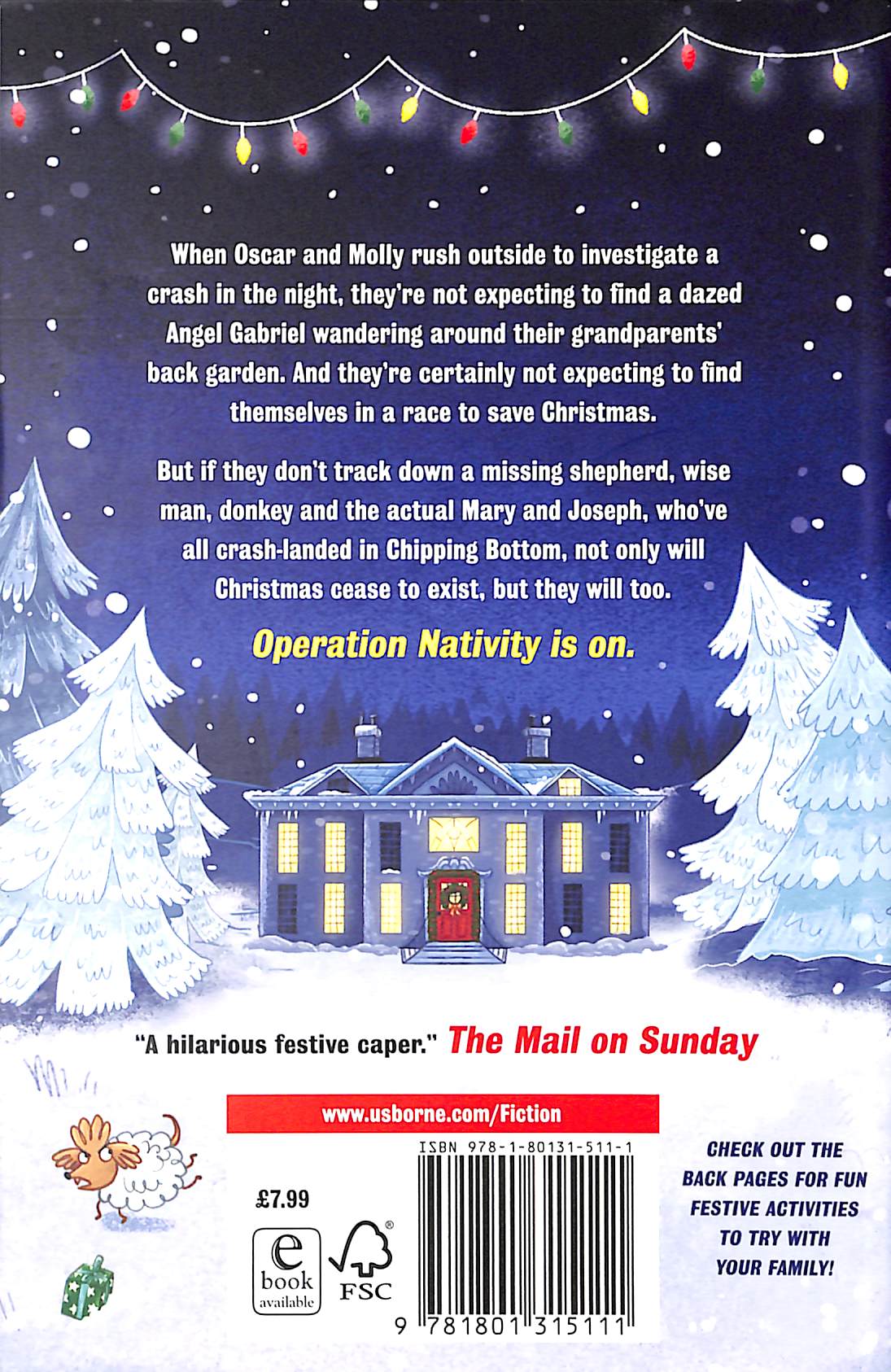 The perfect gift for Christmas." Hannah Gold, author of The Last Bear When Oscar and Molly rush outside to investigate a crash in the night, they're not expecting to find a dazed Angel Gabriel wandering around their grandparents' back garden. And they're certainly not expecting to find themselves in a race to save Christmas. But if they don't track down a missing shepherd, wise man, donkey and the actual Mary and Joseph, who've all crash-landed in Chipping Bottom, not only will Christmas cease to exist, but they will too. Operation Nativity is on. Featuring fun festive activities to try with your family!