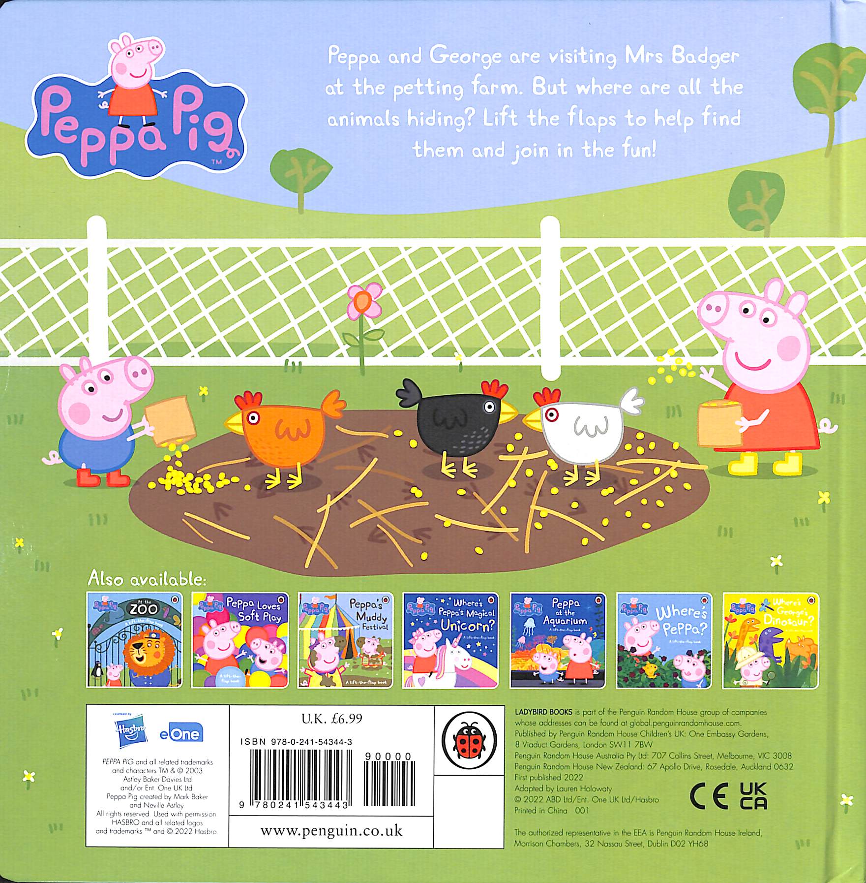 Lift the flaps to find out!Featuring a large interactive flap on every spread, join Peppa and George as they find the animals around the farm.