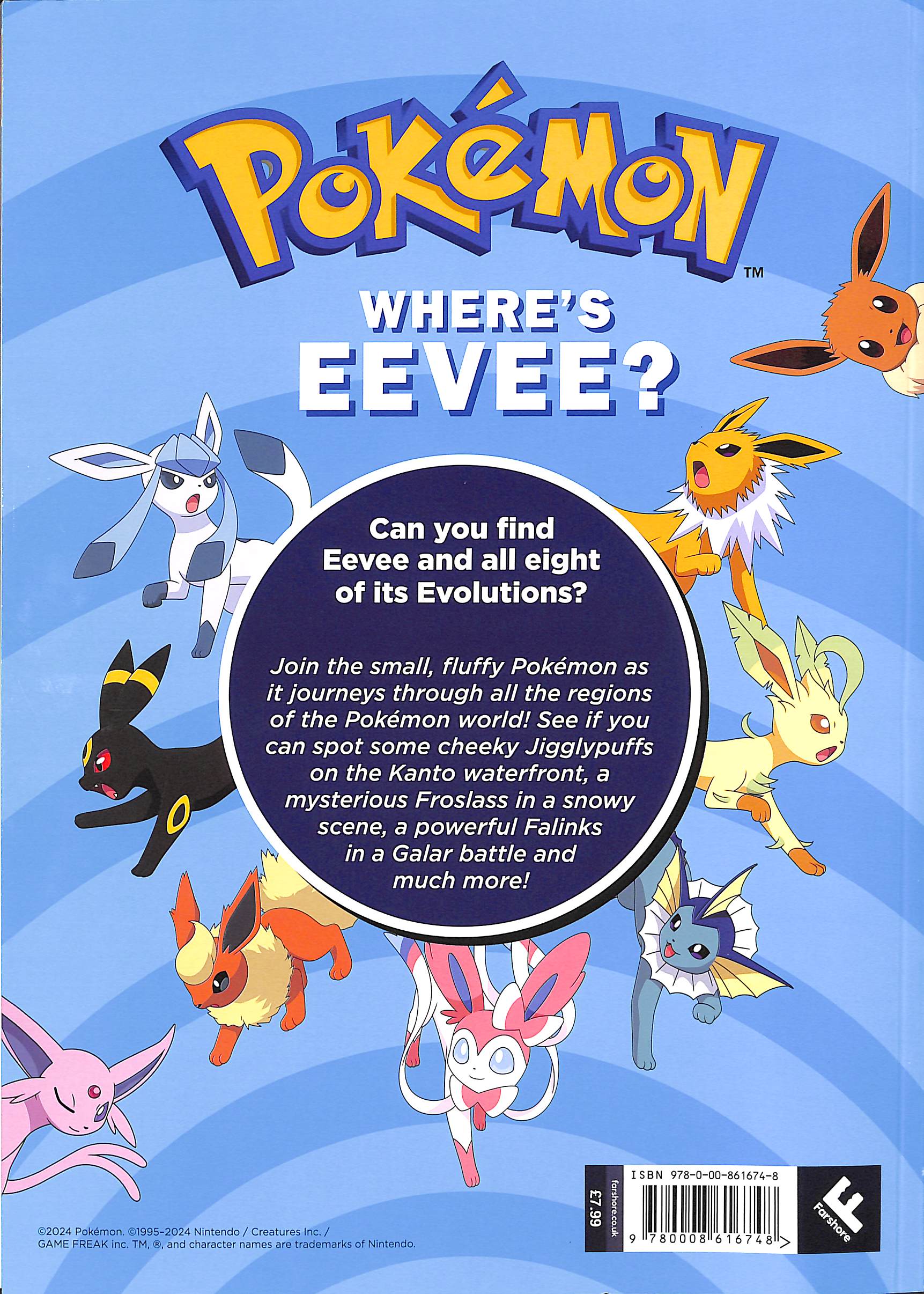 Search for Eevee and friends as you travel across the regions in this ultimate Pokémon search and find! Are you a Pokémon Go fan? This book is the ultimate screen-free alternative – with several Pokémon to catch on every action-packed, full-colour page, every Pokémon enthusiast will spend hours finding all their favourite characters and identifying new ones. Did you know that the Evolution Pokémon Eevee can evolve into 8 different Pokémon?