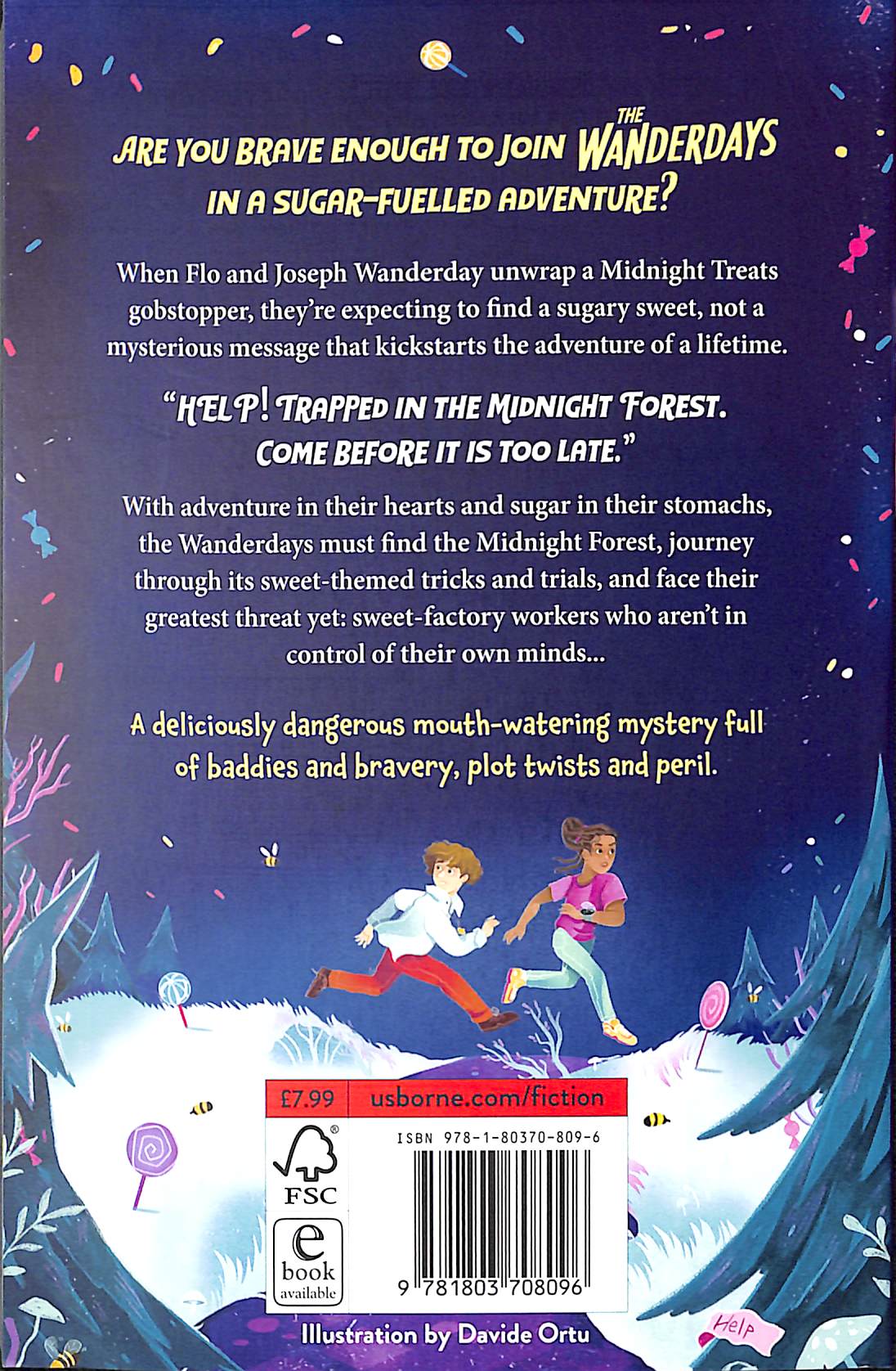 Wonka meets Spy Kids - a deliciously dangerous mouth-watering mystery. When Flo and Joseph Wanderday unwrap a Midnight Treats gobstopper, they're expecting to find a sugary sweet, not a mysterious message that kickstarts the adventure of a lifetime. "HELP! Trapped in Midnight Forest. Come before it is too late."With adventure in their hearts and sugar in their stomachs, the Wanderdays must find the Midnight Forest, journey through its sweet-themed tricks and trials, and face their greatest threat yet: sweet-factory workers who aren't in control of their own minds... An action-packed, sugar-fuelled adventure by Waterstones Book of the Month author, Clare Povey.