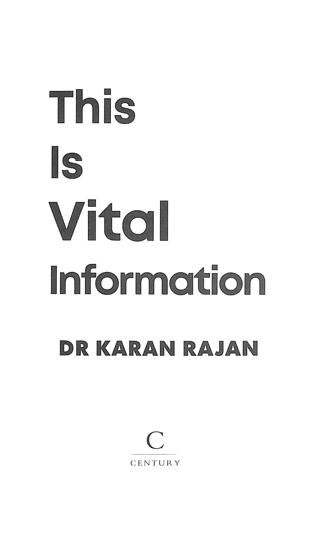 This is Vital Information by Rajan, Dr Karan (9781529923056) | Browns Books