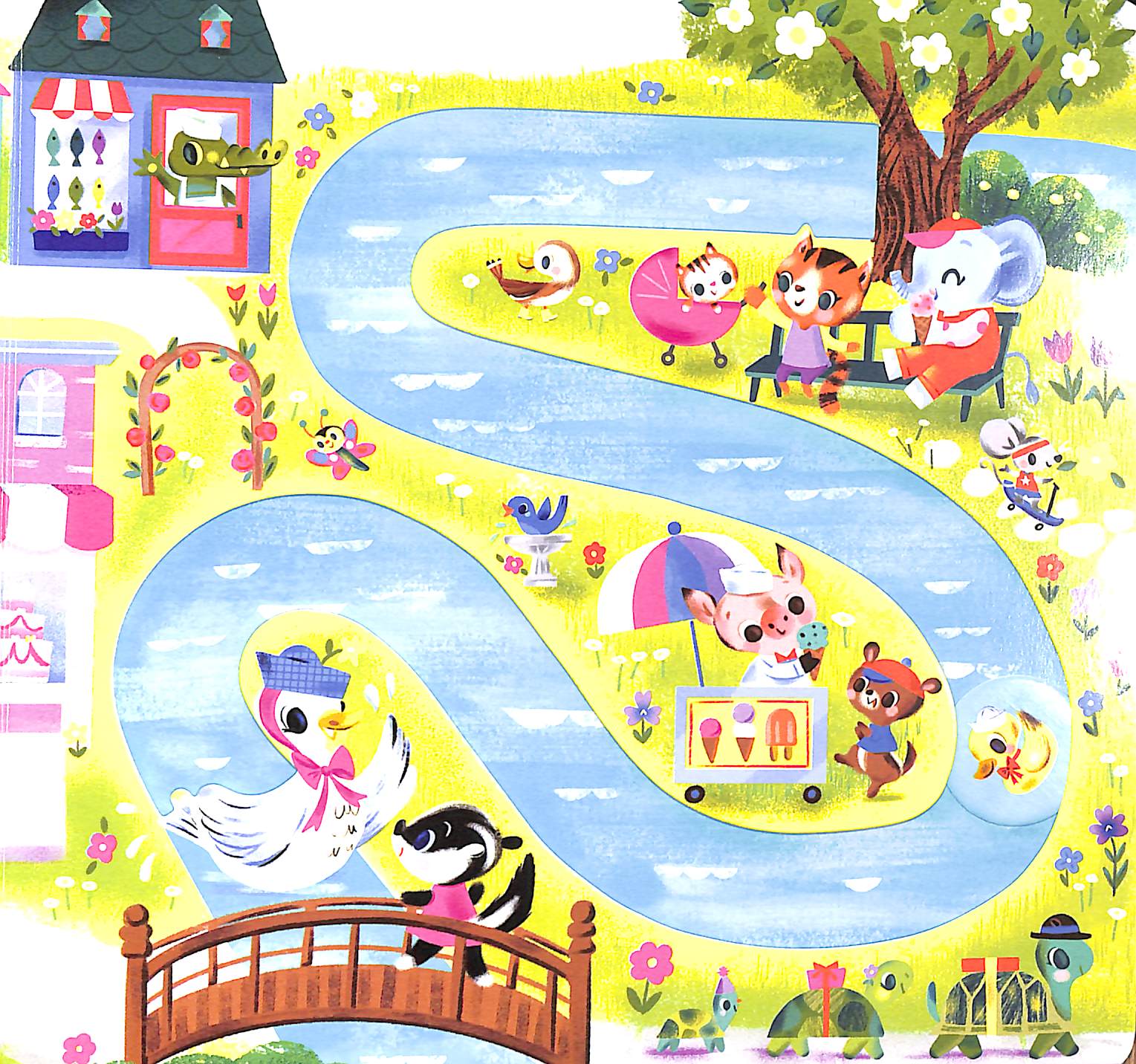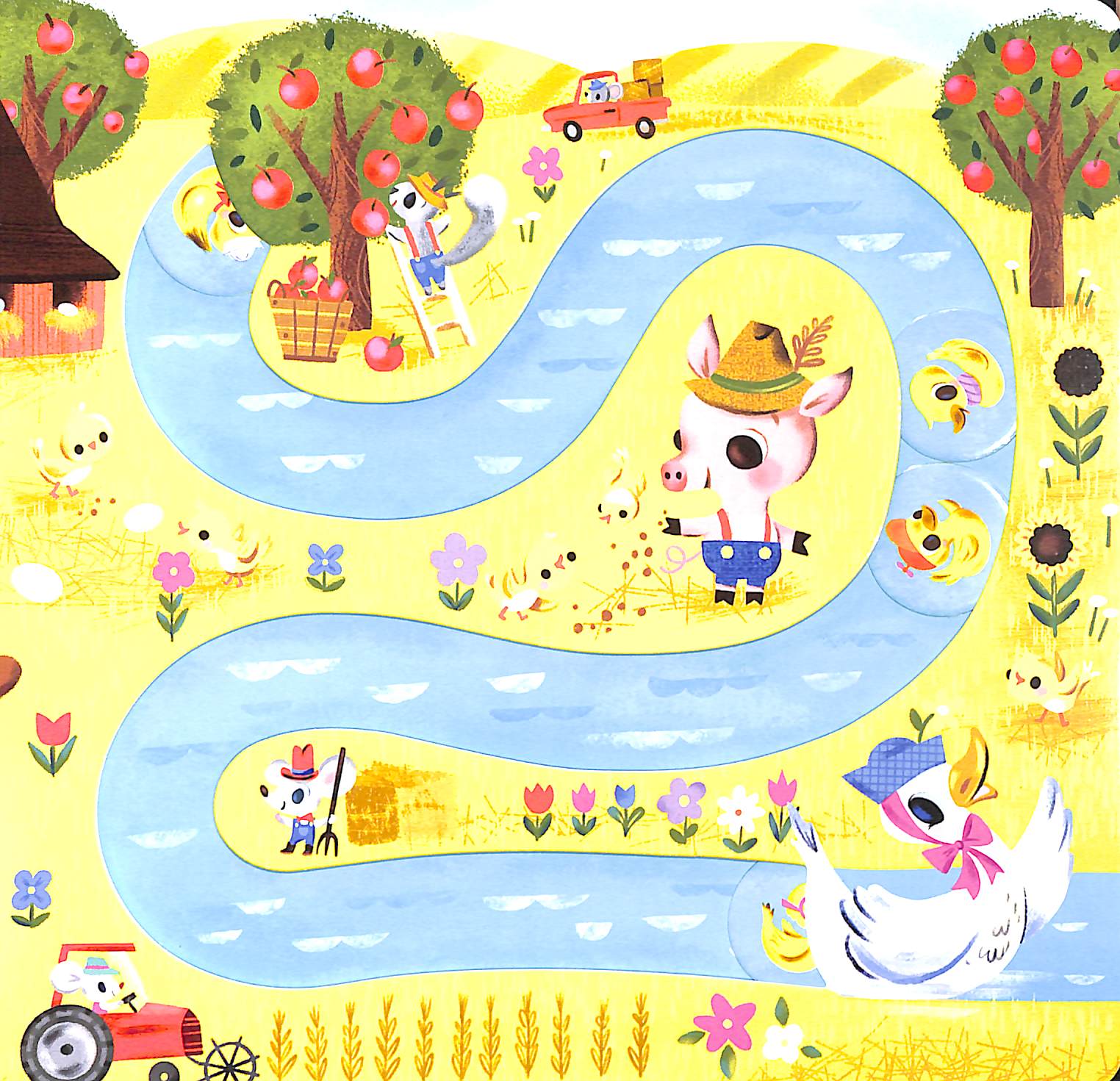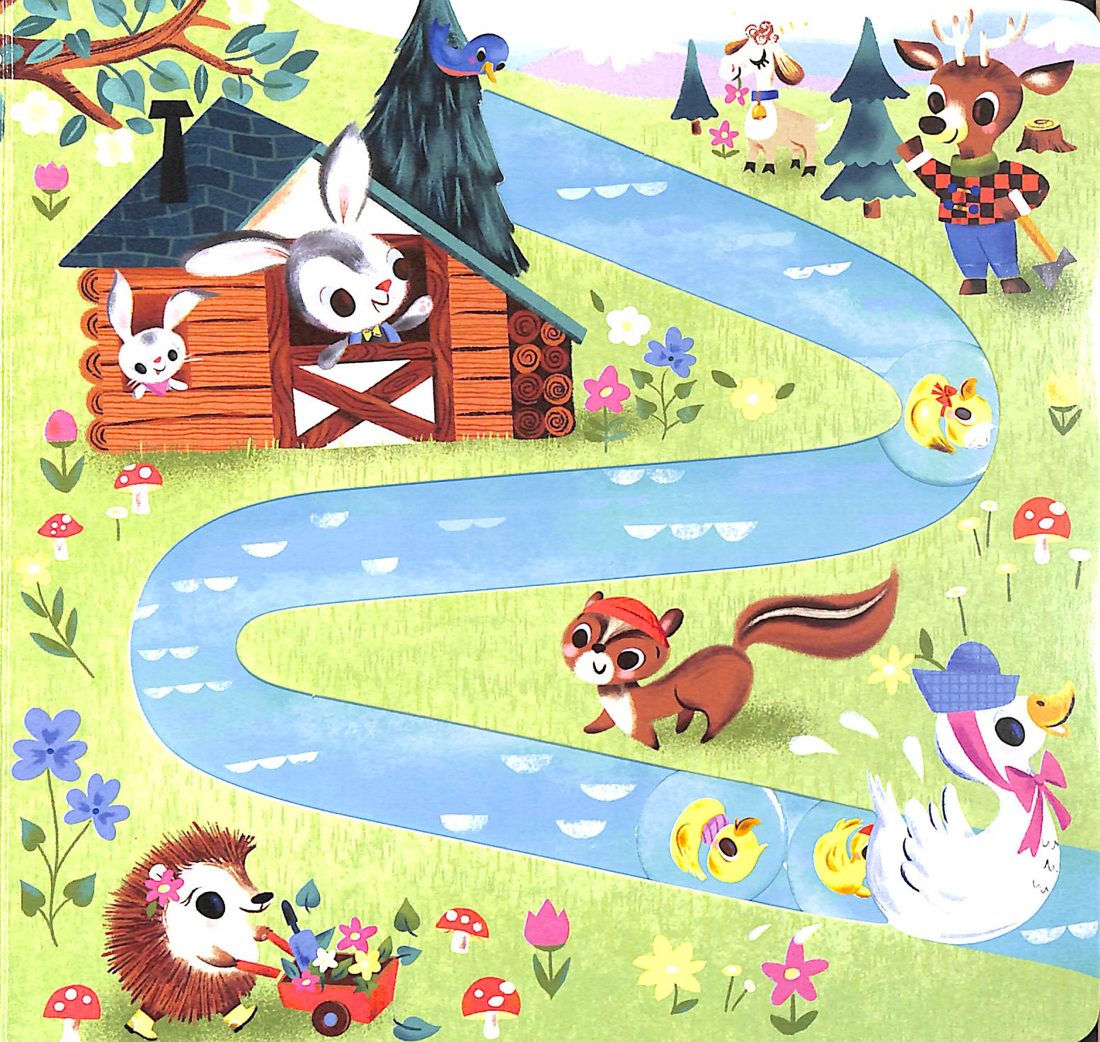 A brilliantly engaging interactive counting book - slide the buttons along the special track to count Mother Duck's little ducklings from the popular nursery rhyme, Five Little Ducks. Little children will have huge fun moving the buttons around the page to make Mother Duck's little ducklings follow her down the stream and off on their adventures!