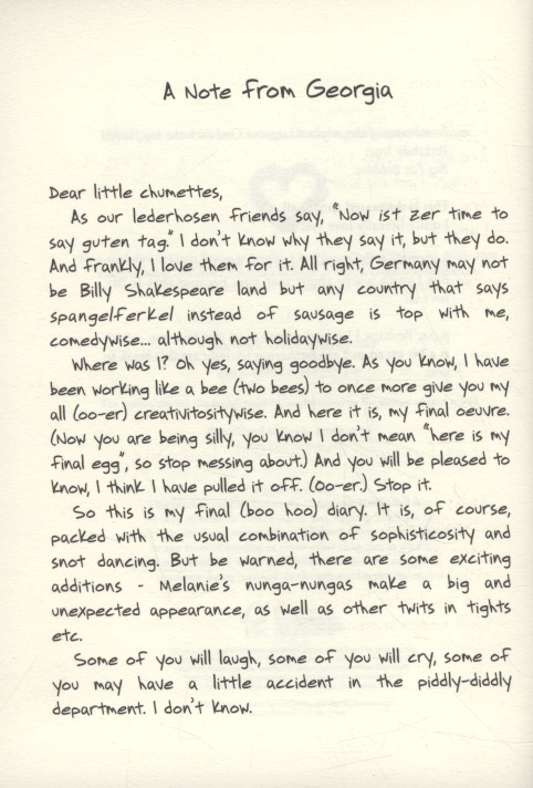 Get ready to laugh like a loon on loon tablets. It's the FINAL instalment of Georgia's fab and hilarious diary! Does Georgia escape the cakeshop of luuurve? Can there be more heartbreaknosity in store? Will the Sex God pop up again unexpectedly (oo-er)! And what about the supreme accidental snogmaster Dave the Laugh? Will she FINALLY choose her only one and only? So many boys, so little time!