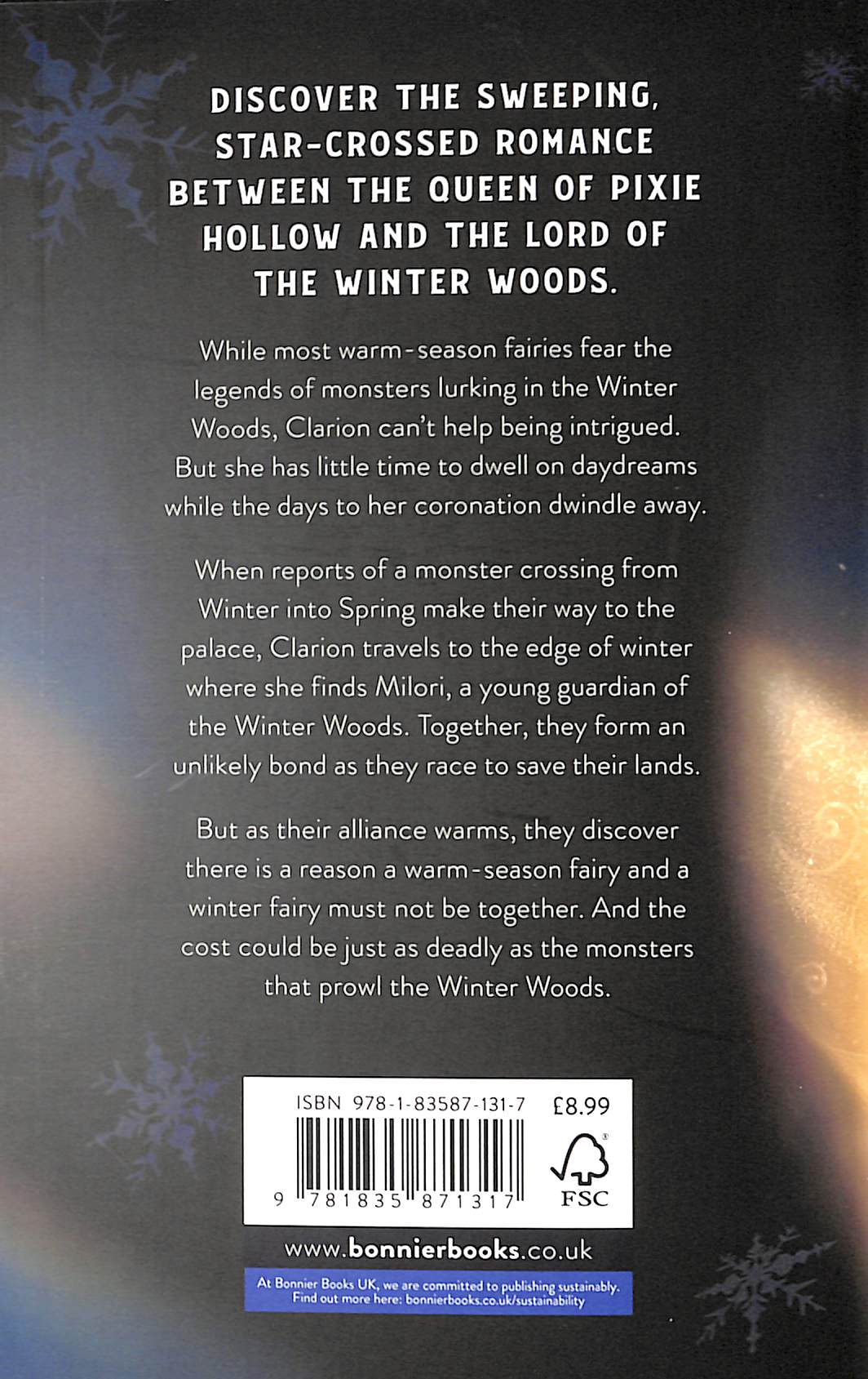 Together, they form an unlikely bond as they race to save their lands. But as their alliance warms to something more, they will discover there is a reason a warm-season fairy and a winter fairy must not be together. And the cost could be just as deadly as the monsters that prowl the Winter Woods.