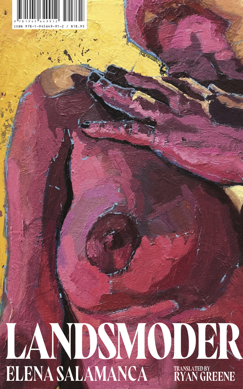 Landsmoder, by the Salvadoran poet, historian, and performance artist Elena Salamanca, is a searing, and sometimes grotesque, exploration of the intersections between nationalism, dogma, patriarchy, and violence. Originally read aloud from the oldest standing monument in San Salvador’s centro histórico, the performance poems in Landsmoder retool the laudatory pomp of patriotic ceremony to protest the weaponization of national myth as a mask for erasure, cruelty, and neglect at the hands of the state.